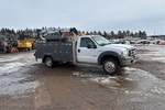 V8 Diesel Engine, Automatic Transmission, 2721 kg Front Axle, 6196 kg Rears, 8141 kg GVWR, 225/70R19.5, Spring Suspension, 166 in Wheelbase, PTO, 11 ft Body, Hydraulic Stabilizers, 2015 Maxilift 5500 5100 lb 3 Section Hydraulic Crane, Wireless Remote Control, Hydraulic Air Compressor