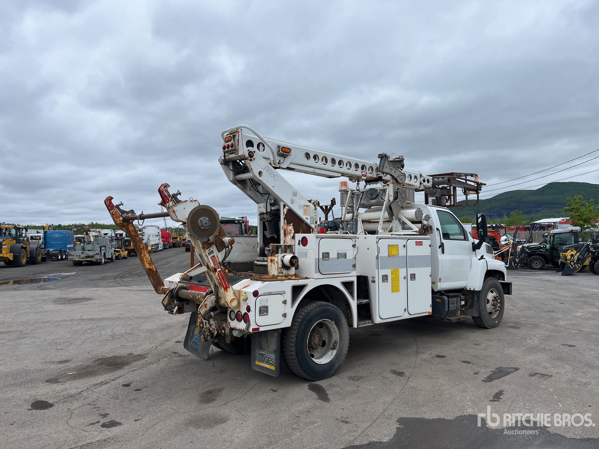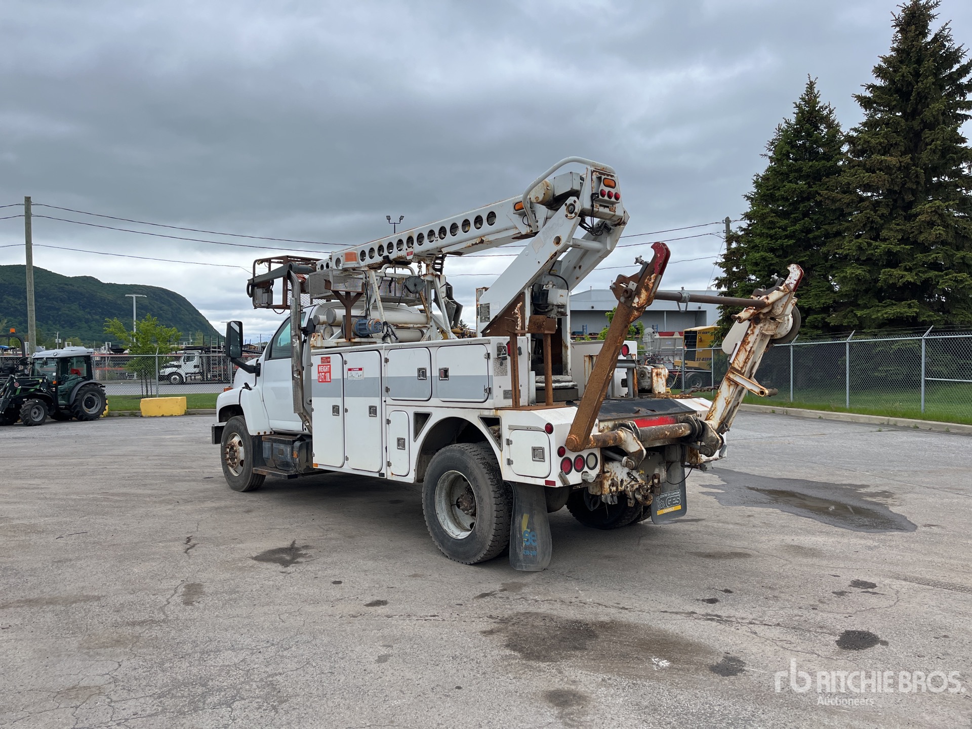 6 Cylinder Diesel Engine, Allison Automatic Transmission, 12000 lb Front Axle, 21000 lb Rears, 33000 lb GVWR, 11R22.5, Spring Suspension, 170 in Wheelbase, PTO, 500 lb Capacity, Center Mounted, One-Person Telescopic Boom, Utility Body, Hydraulic Hose Reel, Pintle Hitch