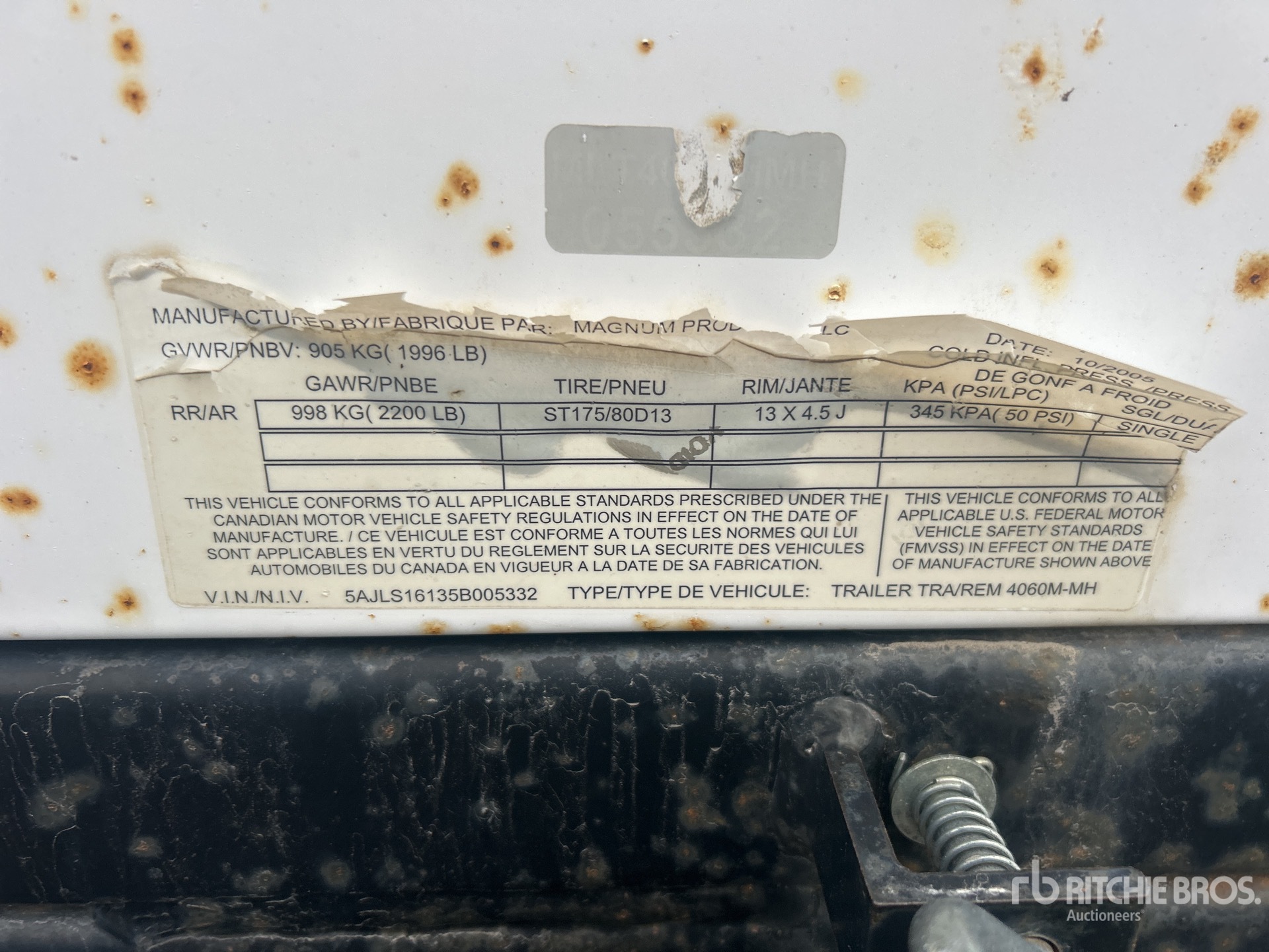 The detailed equipment information is limited in scope, and Ritchie Bros. Auctioneers has not inspected any aspects or components of the equipment other than those expressly set forth herein. Unless expressly stated, we make no representations or warranties, express or implied, concerning the equipment or its components, including without limitation any representations or warranties concerning functionality, conformity or compliance with any safety standard or requirement of any applicable authority or regulatory body, fitness for any particular purpose, or merchantability. You are strongly advised to perform your own detailed inspection of the equipment prior to bidding.