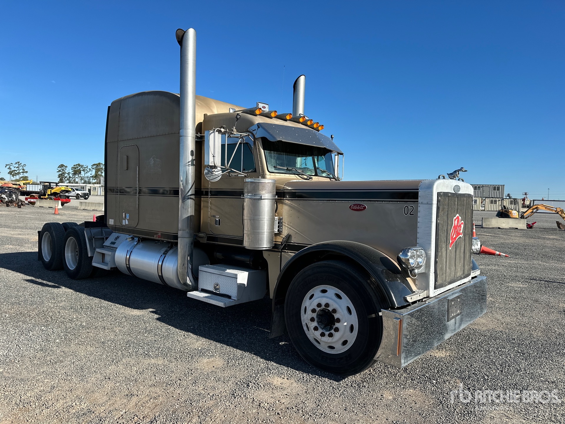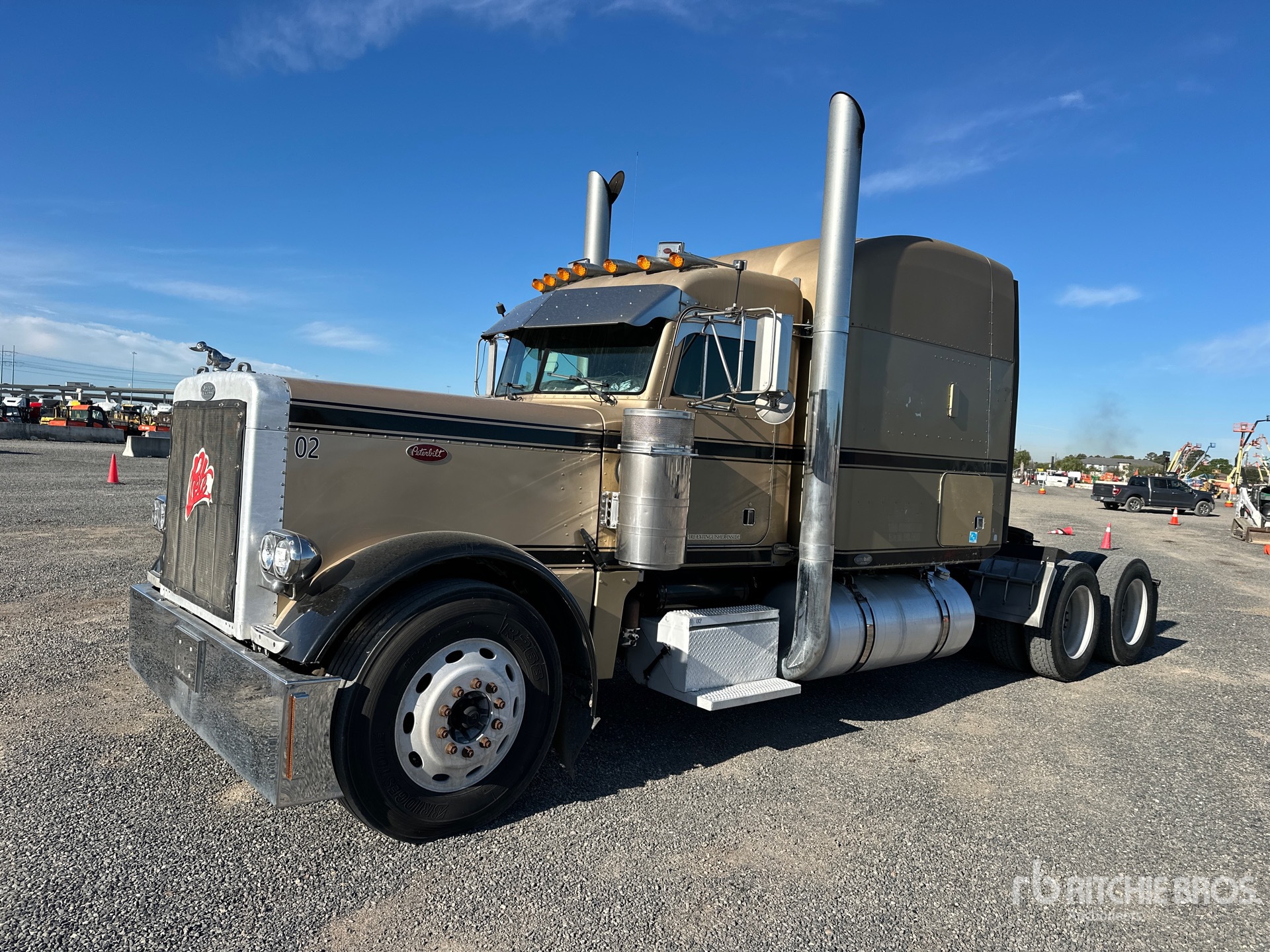 Cat C15 Engine, Eaton Fuller 13-Speed Manual Transmission, 12000 lb Front Axle, 36000 lb Rears, 48000 lb GVWR, Engine Brake, 63 in Mid Roof Sleeper Cab, 265 in Wheelbase, Air Suspension, Aluminum Wheels, 11R22.5 Front Tires, 285/75R24.5 Rear Tires, Air Sliding 5th Wheel, Dual Fuel Tanks