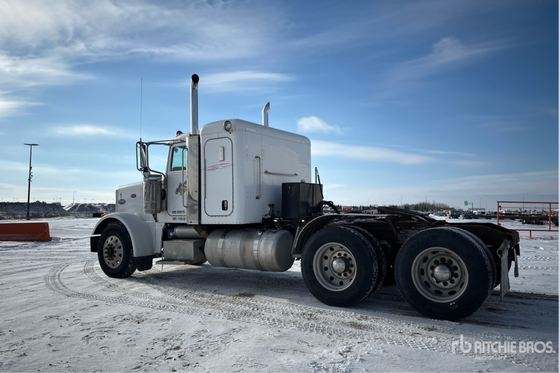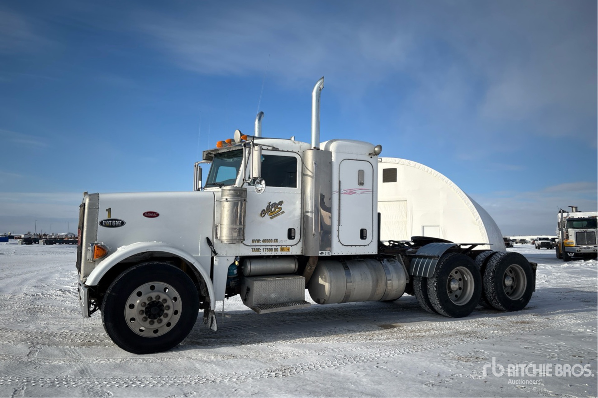 Located in Lane 35 Spot 9, Cat C15 Engine, 36251 Engine hrs, Eaton Fuller 18-Speed Manual Transmission, 12000 lb Front Axle, 40000 lb Rears, 52000 lb GVWR, Engine Brake, Differential Lock, 36 in Flat Top Sleeper Cab, 220 in Wheelbase, Air Suspension, Aluminum Wheels, 11R24.5, Wet Kit, Air Sliding 5th Wheel, Dual Fuel Tanks, Complete-Dispersal-for-ABS-Trucking