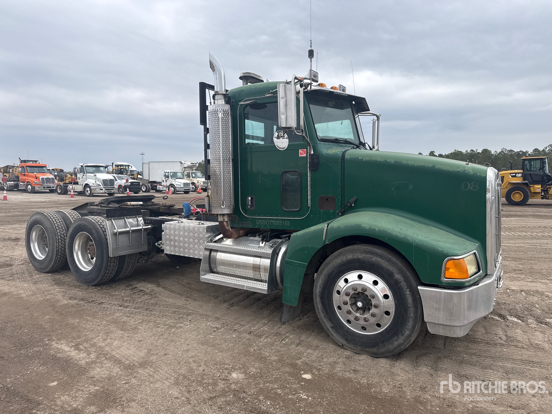 Located in Spot 22, Cat C13 410 hp Engine, 2004 US EPA Label, 31829.5 Engine hrs, Manual Transmission, 12000 lb Front Axle, 38000 lb Rears, 50000 lb GVWR, 198 in Wheelbase, Air Suspension, Aluminum Outer Wheels, 11R22.5, Air Sliding 5th Wheel, Dual Fuel Tanks, Headache Rack, Lowboy Ramps