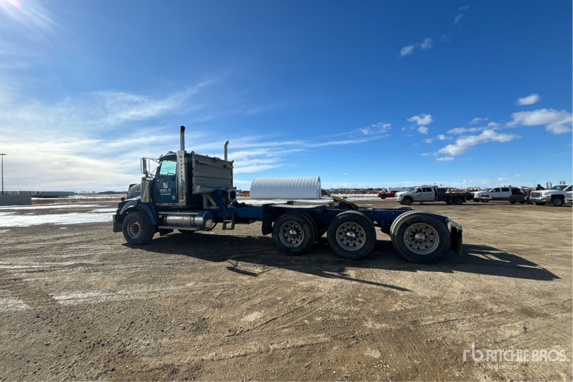 Located in Lane 36 Spot 8, Cat C15 475 hp Engine, 4997 Engine hrs, Eaton Fuller RTLO-1891B 18-Speed Manual Transmission, 20000 lb Front Axle, 66000 lb Rears, 71500 lb GVWR, Engine Brake, 265 in Wheelbase, Air Suspension, 425/65R22.5 Front Tires, 11R24.5 Rear Tires, Double Frame, Wet Kit, Air Sliding 5th Wheel, Dual Fuel Tanks