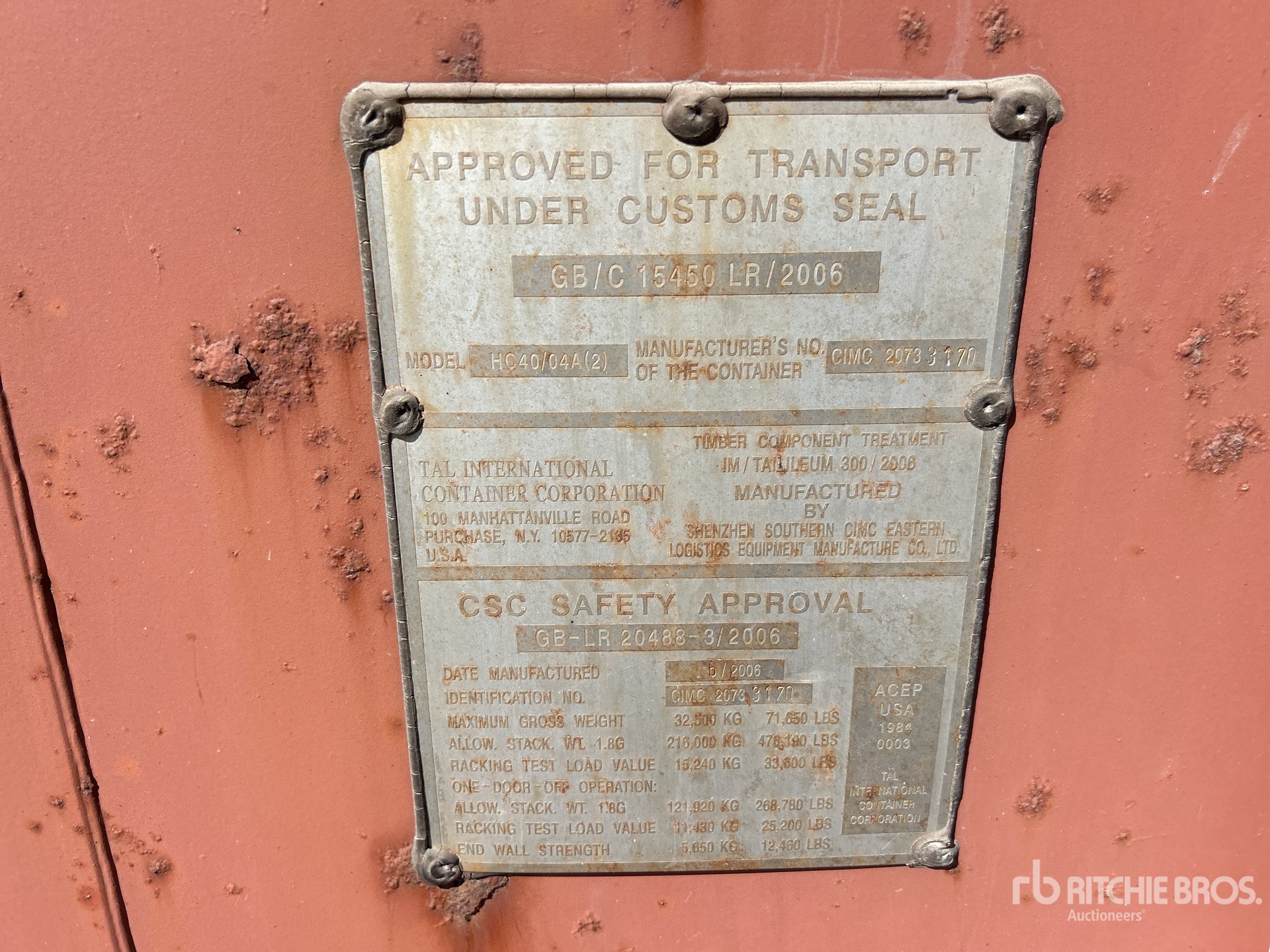 The detailed equipment information is limited in scope, and Ritchie Bros. Auctioneers has not inspected any aspects or components of the equipment other than those expressly set forth herein. Unless expressly stated, we make no representations or warranties, express or implied, concerning the equipment or its components, including without limitation any representations or warranties concerning functionality, conformity or compliance with any safety standard or requirement of any applicable authority or regulatory body, fitness for any particular purpose, or merchantability. You are strongly advised to perform your own detailed inspection of the equipment prior to bidding.