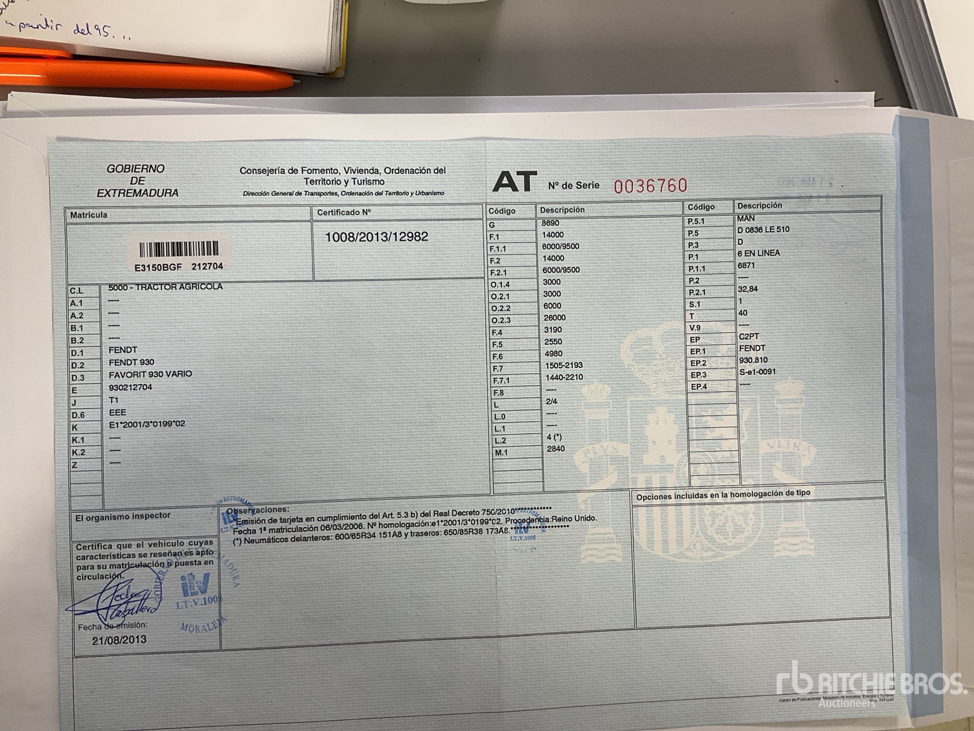 Matriculado en Espana, ITV pendiente a cuenta comprador/ Spanish Registration, Technical Inspection pending**SOLO PARA EL MERCADO NACIONAL Y EUROPEO/ ONLY FOR EUROPE MARKET, THIS LOT CAN NOT BE EXPORTED OUTSIDE OF EUROPE, for more information, please contact our office**SOLO SE PODRA RETIRAR EL VEHICULO UNA VEZ TRAMITADO EL CAMBIO DE NOMBRE**THE VEHICLE MAY ONLY BE REMOVED ONCE THE TITLE IS CANCELED IN TRAFFIC OFFICE**
