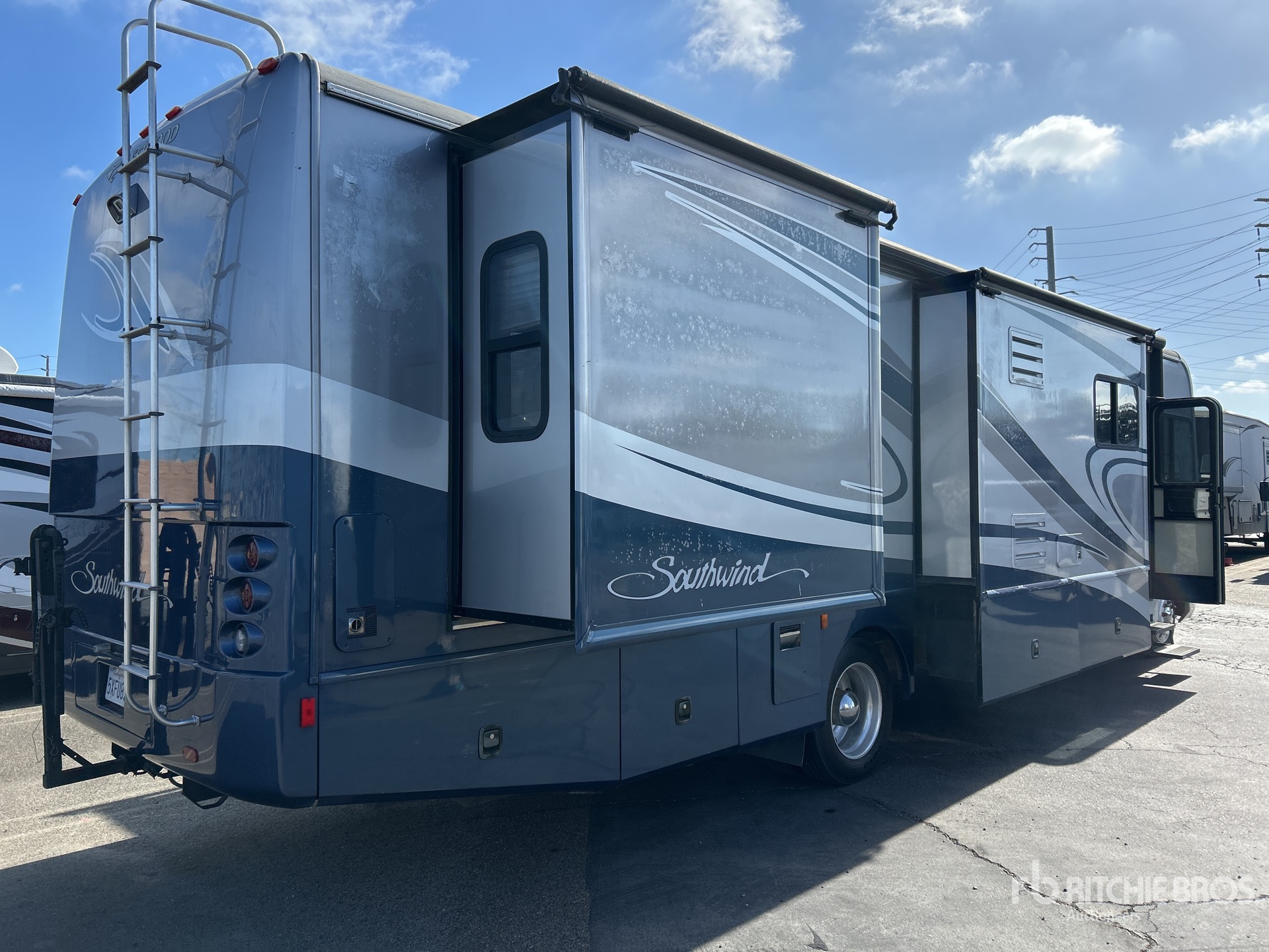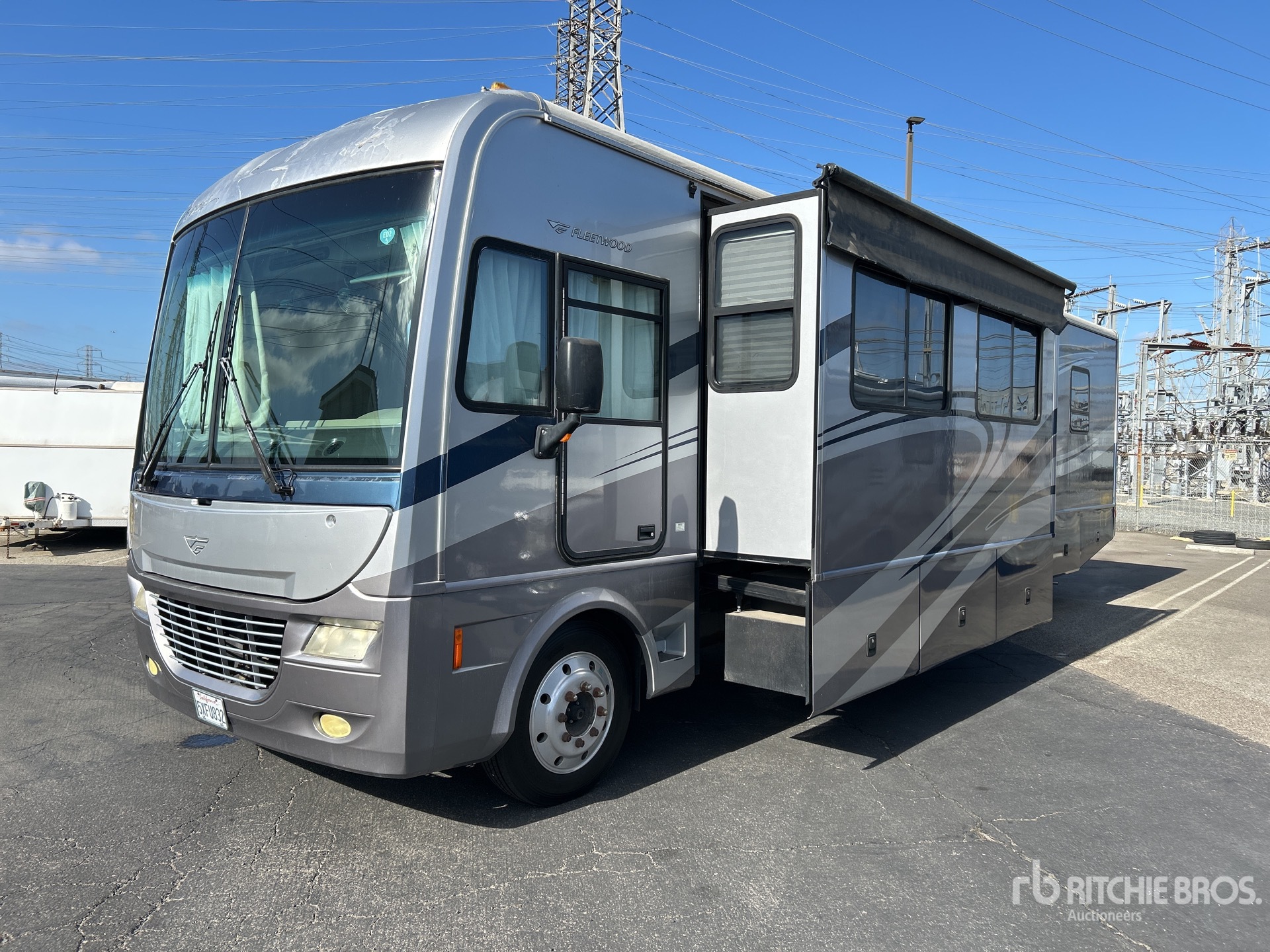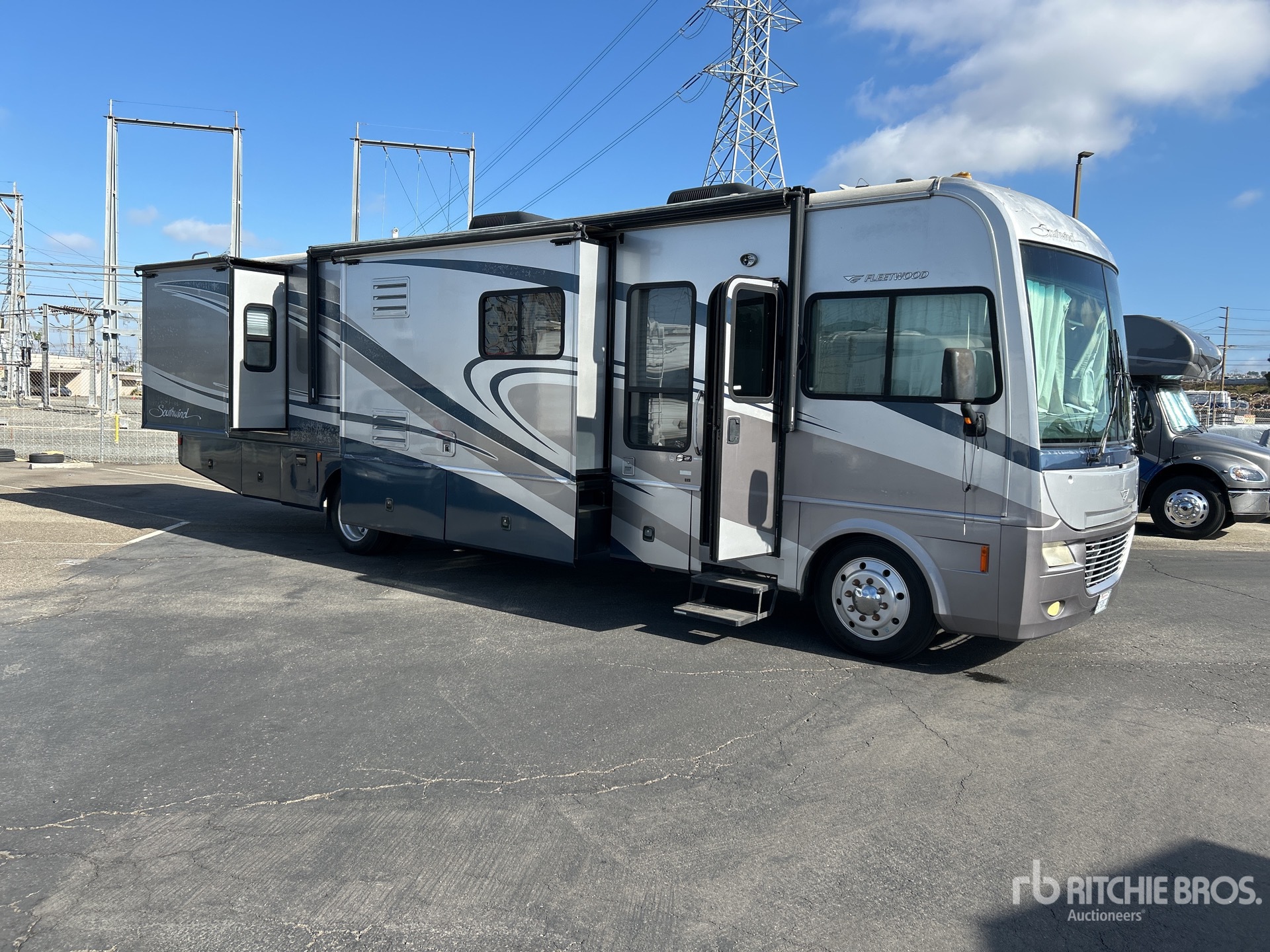Located in Lane 13 Spot 5, Air Conditioner, Automatic Transmission, General Motors Vortec V8 8.1 L Gasoline Engine, Sleeps 6 People, Clothes Washer, 22000 lb GVWR, 3 Slide Outs, Power Entrance Step, Power Leveling Jacks, Power Awning, Roof Mounted Satellite Receiver, Onan 5500 5.5 kW Generator