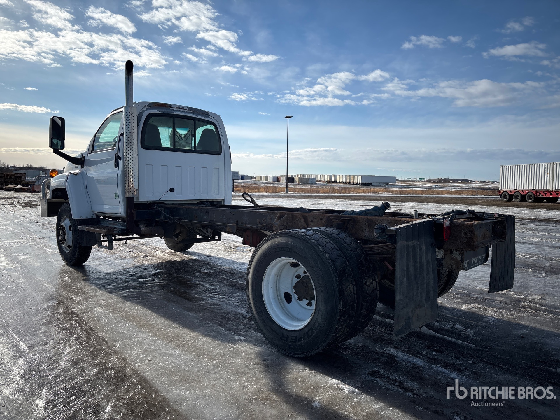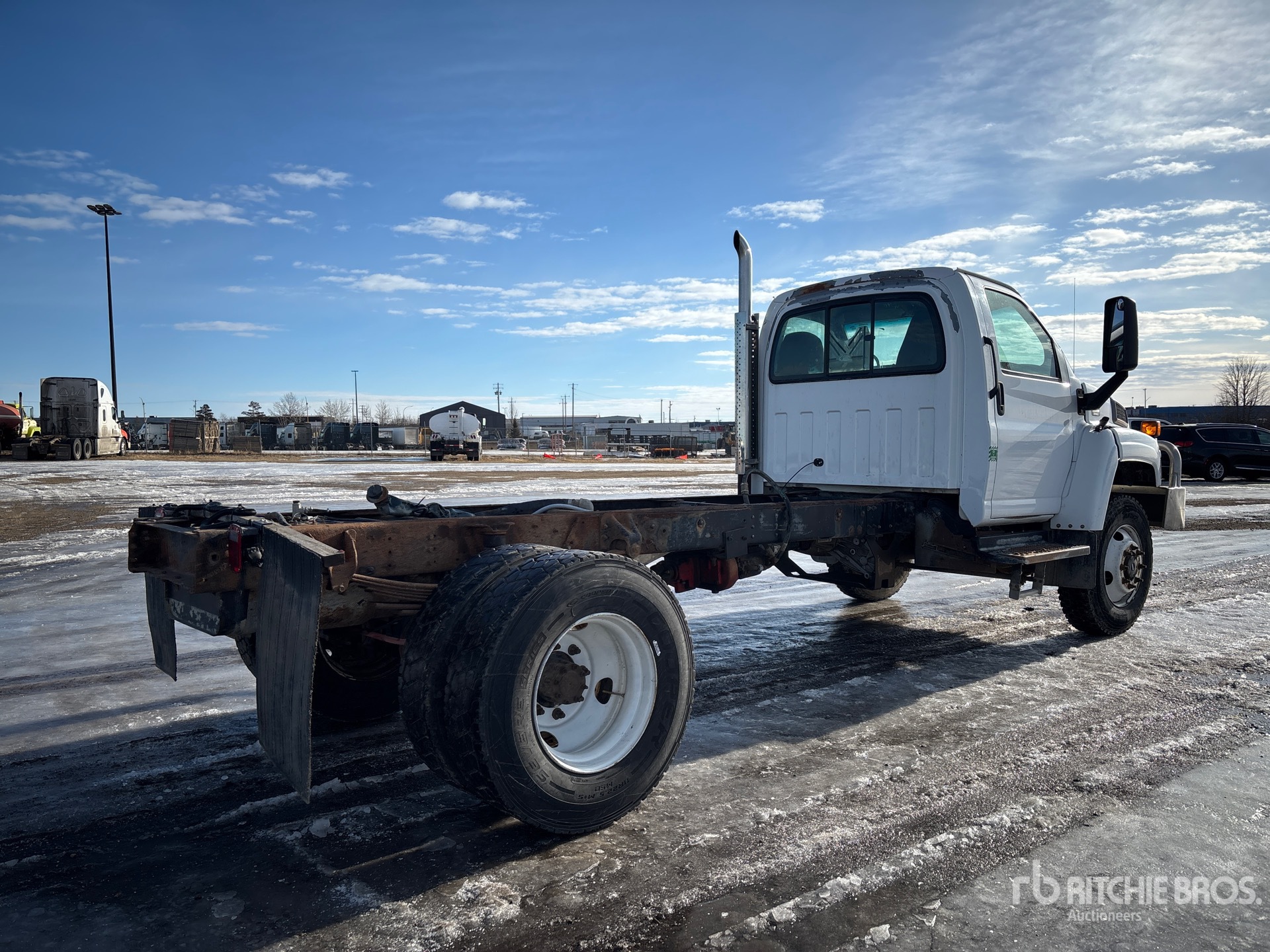 V8 6.6 L Diesel Engine, 21828 Engine hrs, Engine Brake, Automatic Transmission, 8000 lb Front Axle, 13500 lb Rears, 19500 lb GVWR, 11R22.5, Spring Suspension, 196 in Wheelbase, PTO, 128 in Cab to Axle, 174 in Cab to End of Frame, Mid Drive Line Transfer Case for PTO