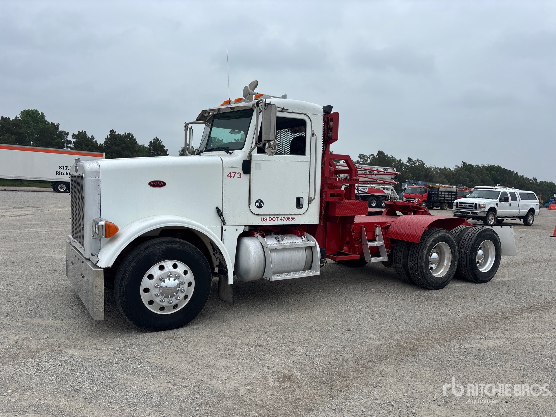 Located in Lane 46 Spot 3, Cat C13 6 Cylinder 12.5 L Diesel 445 hp Engine, 2005 US EPA Label, 17079 Engine hrs, Eaton Fuller Manual Transmission, 12000 lb Front Axle, 36000 lb Rears, 48000 lb GVWR, Air Ride Cab, Aluminum Outer Wheels, 11R22.5 Front Tires, 295/75R22.5 Rear Tires, Air Leaf Air Ride Suspension, 202 in Wheelbase, PTO, Tail Roll, Rufnek Winch