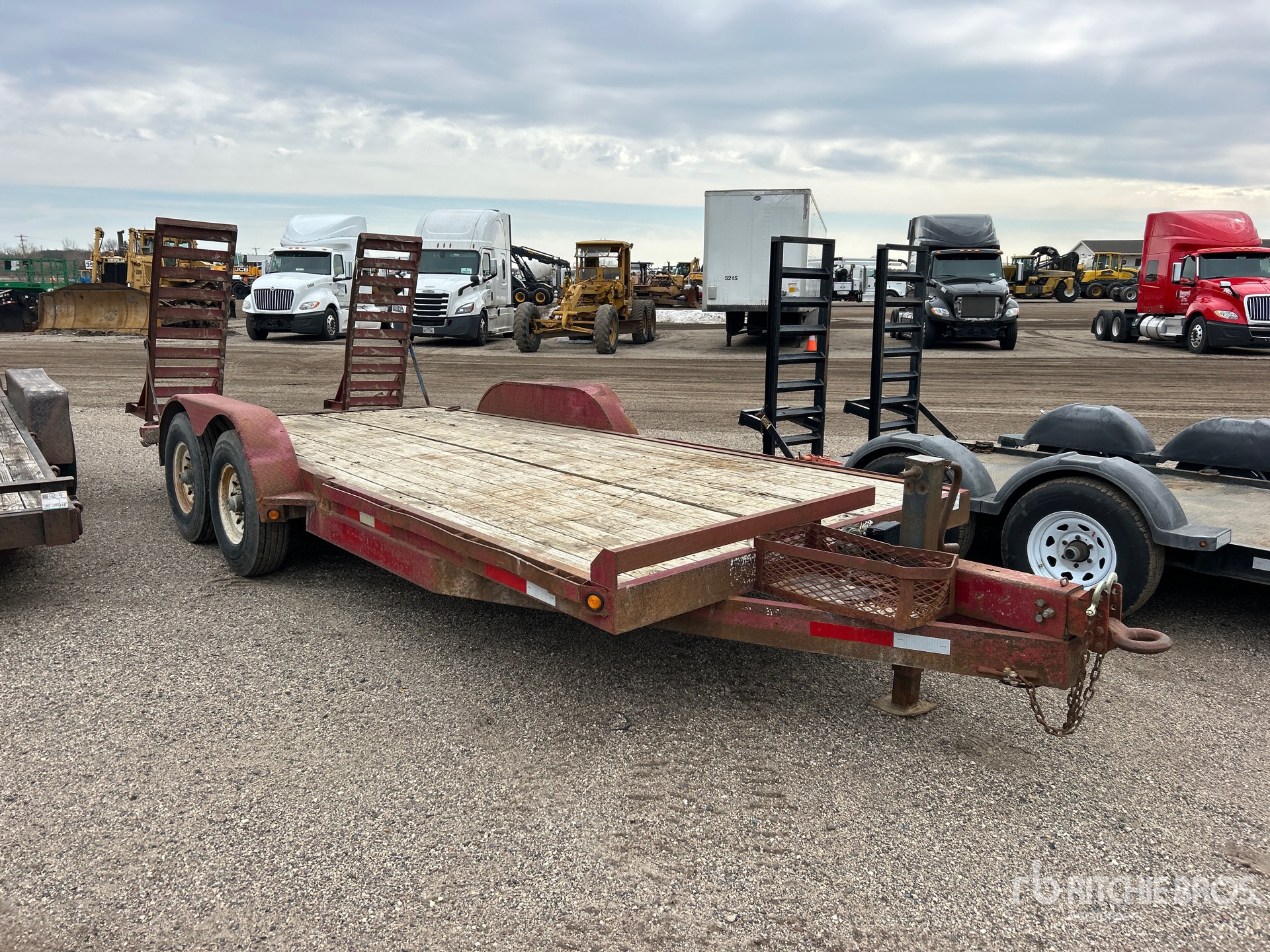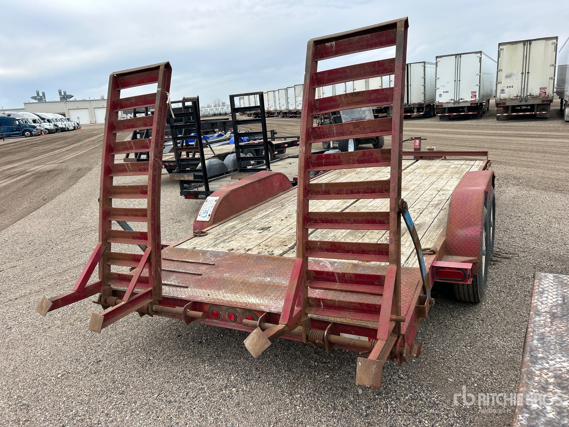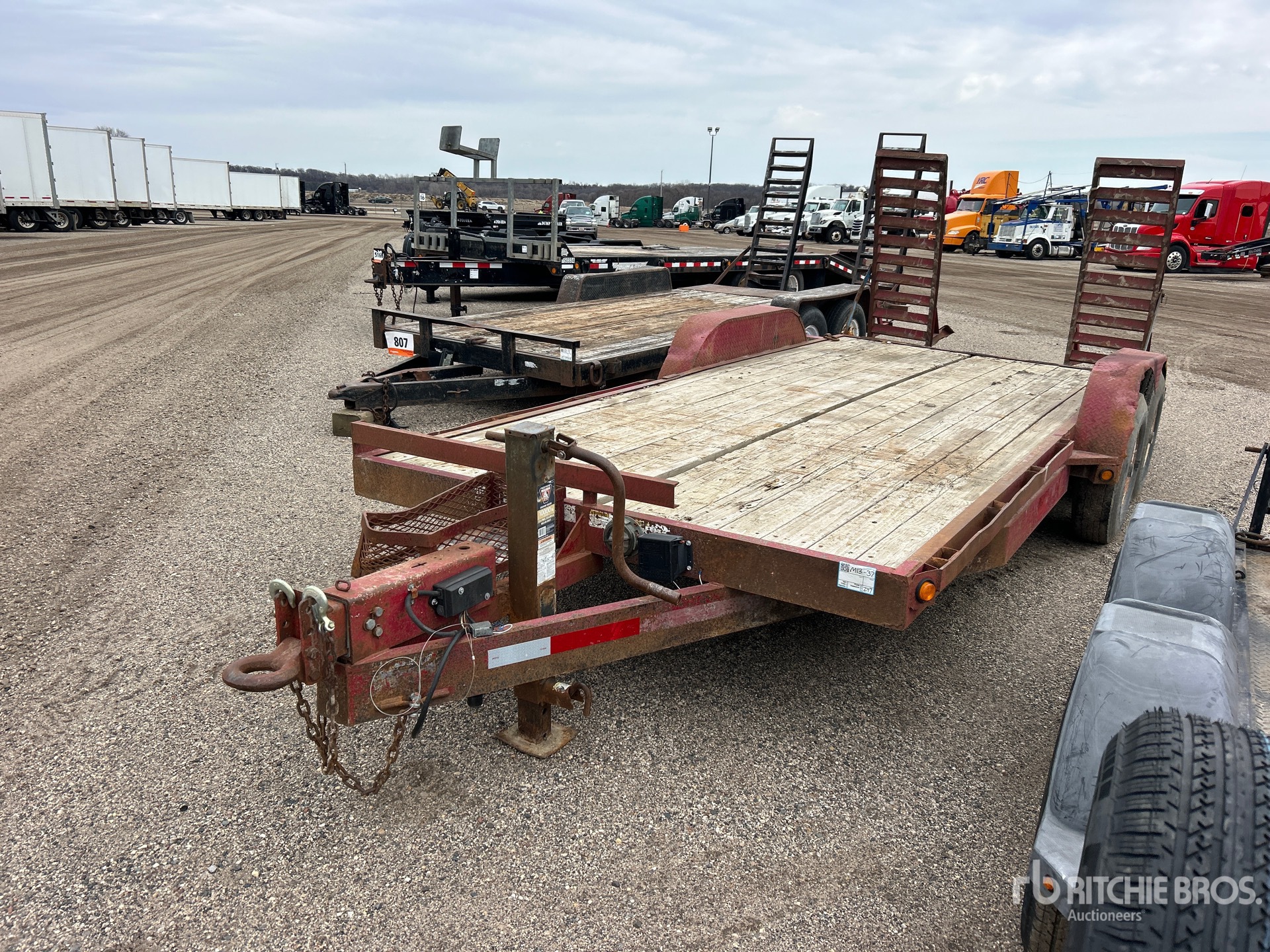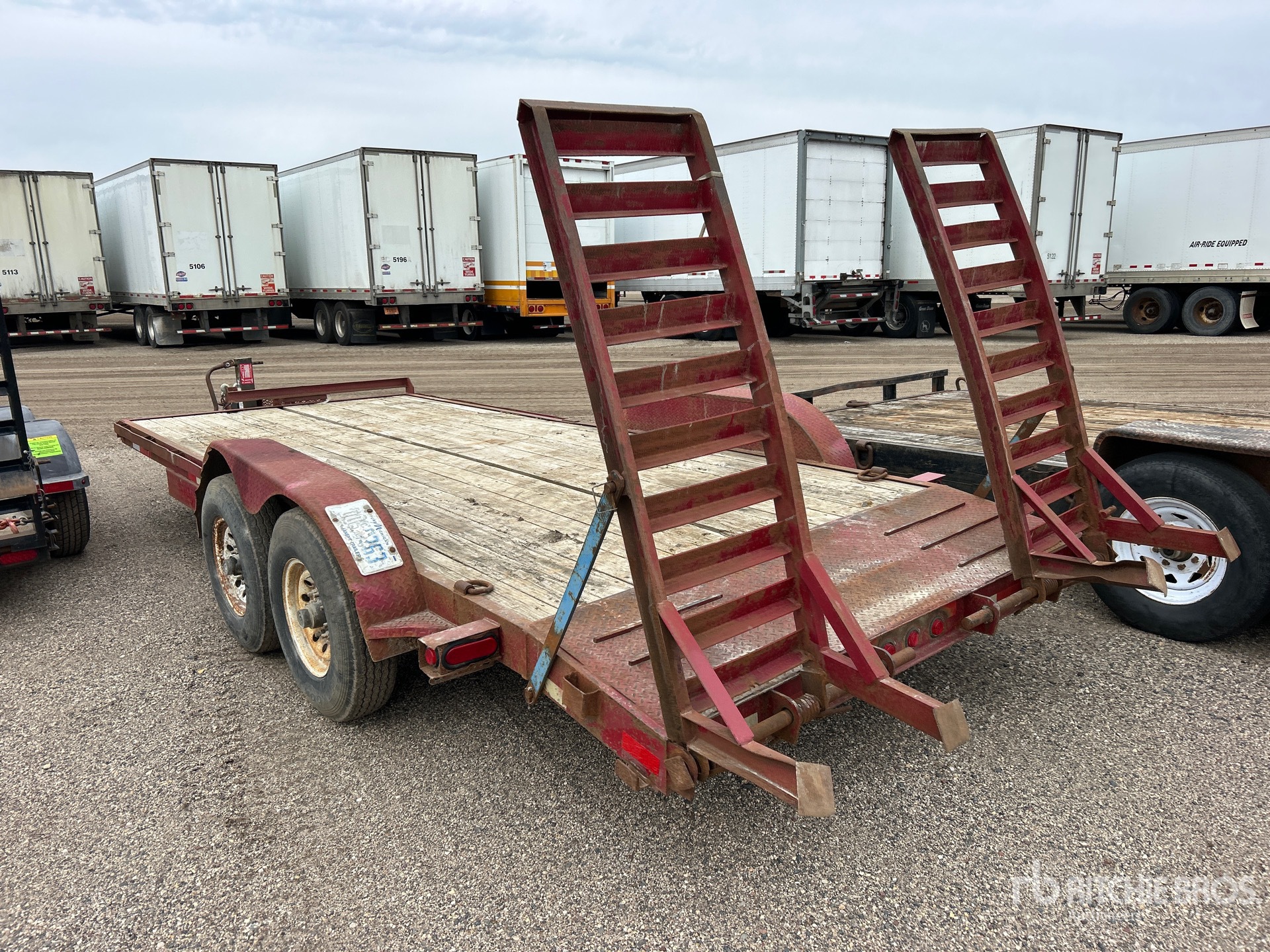Located in Lane 16 Spot 20, Lunette Ring Hitch, Spring Suspension, Electric Brakes, 16 ft Main Deck, 2 ft Fixed Dovetail, 84 in Usable Deck Width, Spring Assisted Ramps, Wood Flooring, 225/90R16 Tires