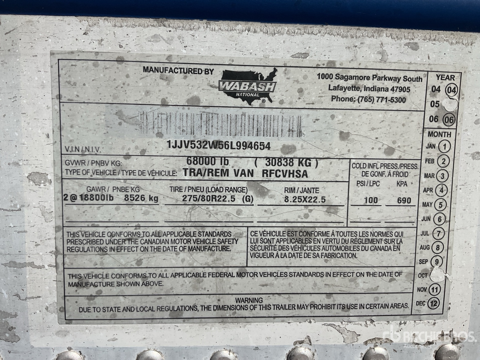 Carrier NDL93VN0-AB-0 Refrigeration Unit, Aluminum Frame, Air Ride Sliding Suspension, Aluminum Floor, Swing Door, 295/75R22.5 Tires 68000 lb GVWR, / Unidad de Refrigeracion Carrier, Marco de Aluminio, Suspension Deslizable de Aire, Piso de Aluminio, Puertas de Apertura Lateral, Llantas 295/75R22.5