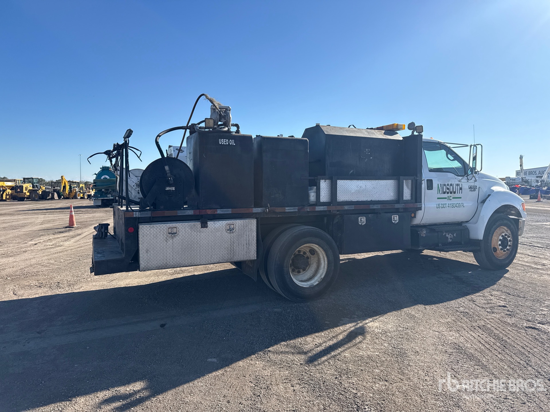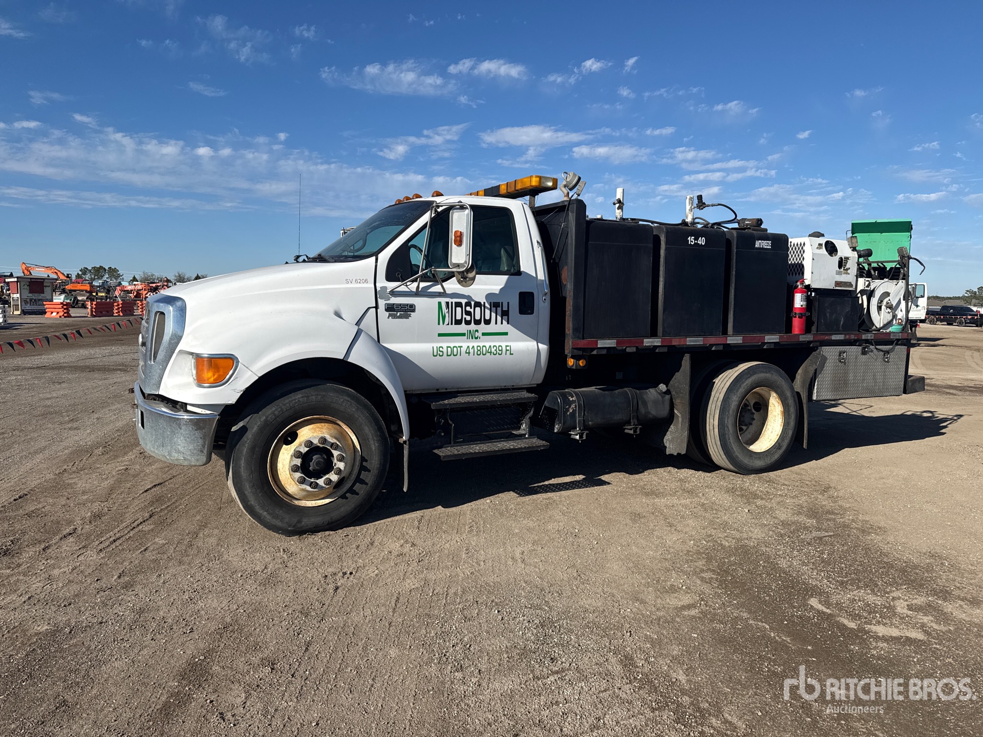 Cummins 6 Cylinder Diesel Engine, Manual Transmission, 10000 lb Front Axle, 19000 lb Rears, 25999 lb GVWR, Air Ride Cab, 11R22.5 Front Tires, 11R22.5 Rear Tires, Spring Suspension, 158 in Wheelbase, PTO, 15 ft 4 in Body, Metered Nozzles, Grease Barrel, IMT DA435HA Hydraulic Air Compressor
