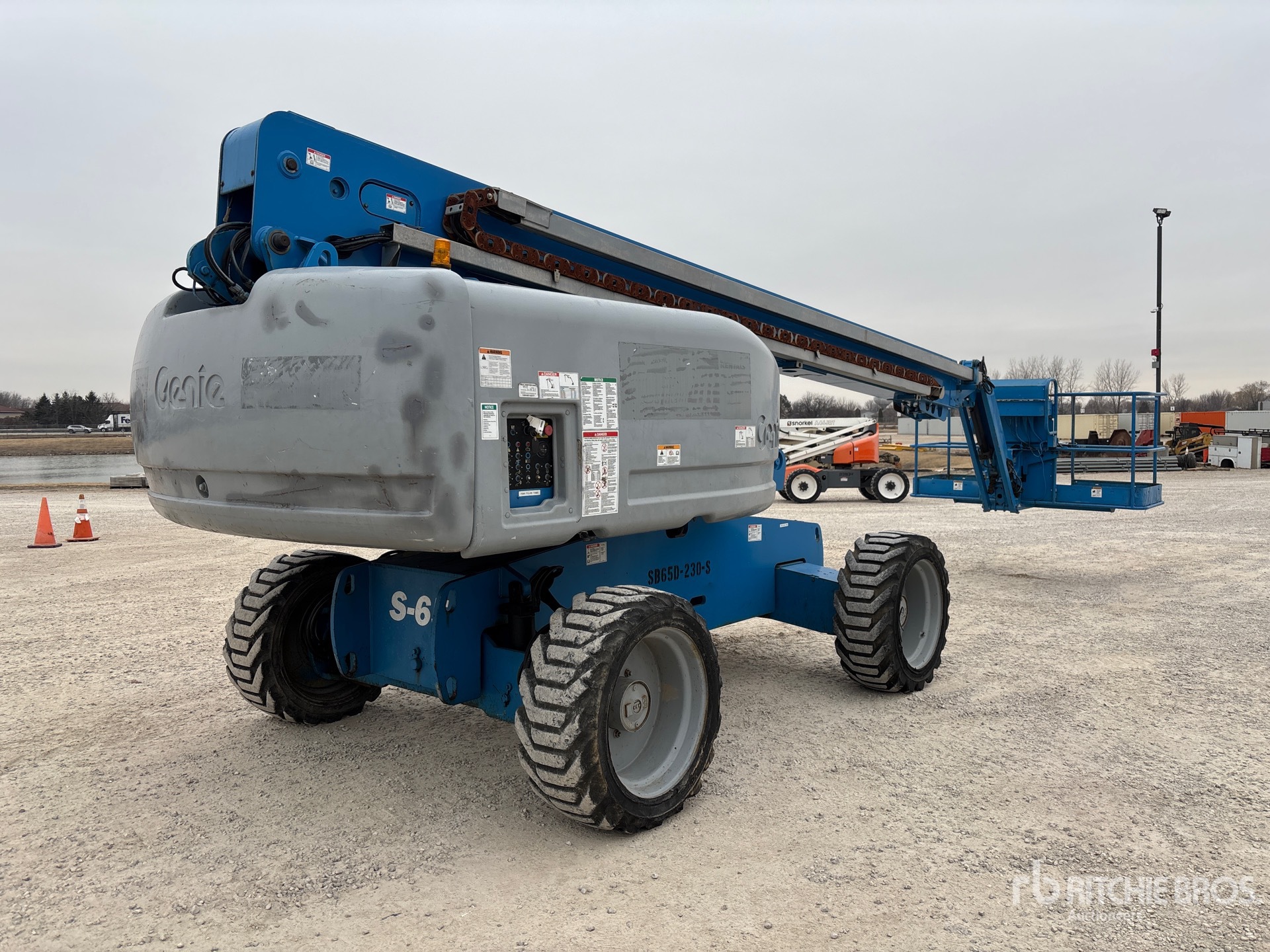 56 ft Max Platform Height, 500 lb Max Weight Capacity, Jib, Power to Platform, Perkins 4 Cylinder 37 kW 2.21 L Diesel Engine, 355/55D625 NHS Foam-Filled Tires
