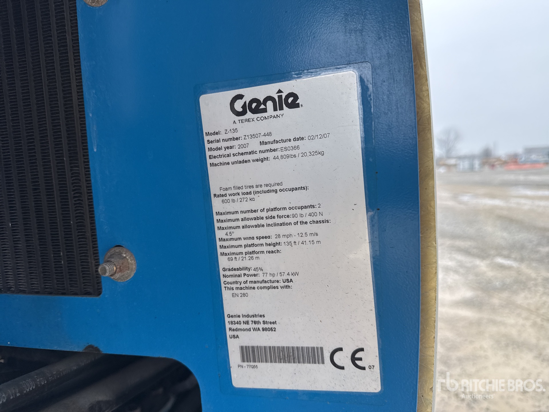 A qualified Ritchie Bros. employee collected detailed equipment information and performed functional tests on the key components of this asset. You, or a proxy, may also inspect any items on site prior to bidding on auction day.