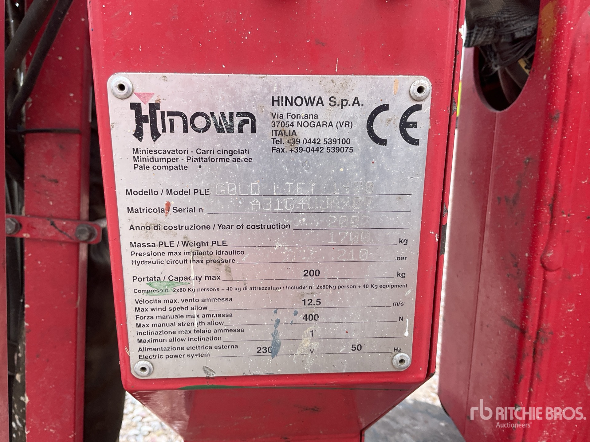 A qualified Ritchie Bros. employee collected detailed equipment information and performed functional tests on the key components of this asset. You, or a proxy, may also inspect any items on site prior to bidding on auction day.