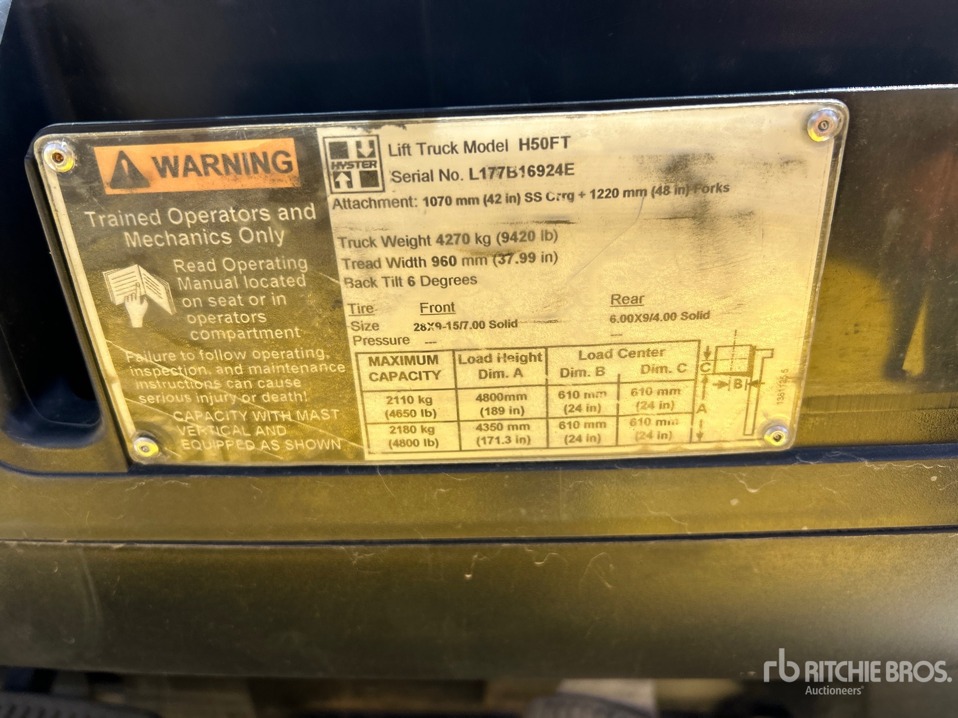 The detailed equipment information is limited in scope, and Ritchie Bros. Auctioneers has not inspected any aspects or components of the equipment other than those expressly set forth herein. Unless expressly stated, we make no representations or warranties, express or implied, concerning the equipment or its components, including without limitation any representations or warranties concerning functionality, conformity or compliance with any safety standard or requirement of any applicable authority or regulatory body, fitness for any particular purpose, or merchantability. You are strongly advised to perform your own detailed inspection of the equipment prior to bidding.