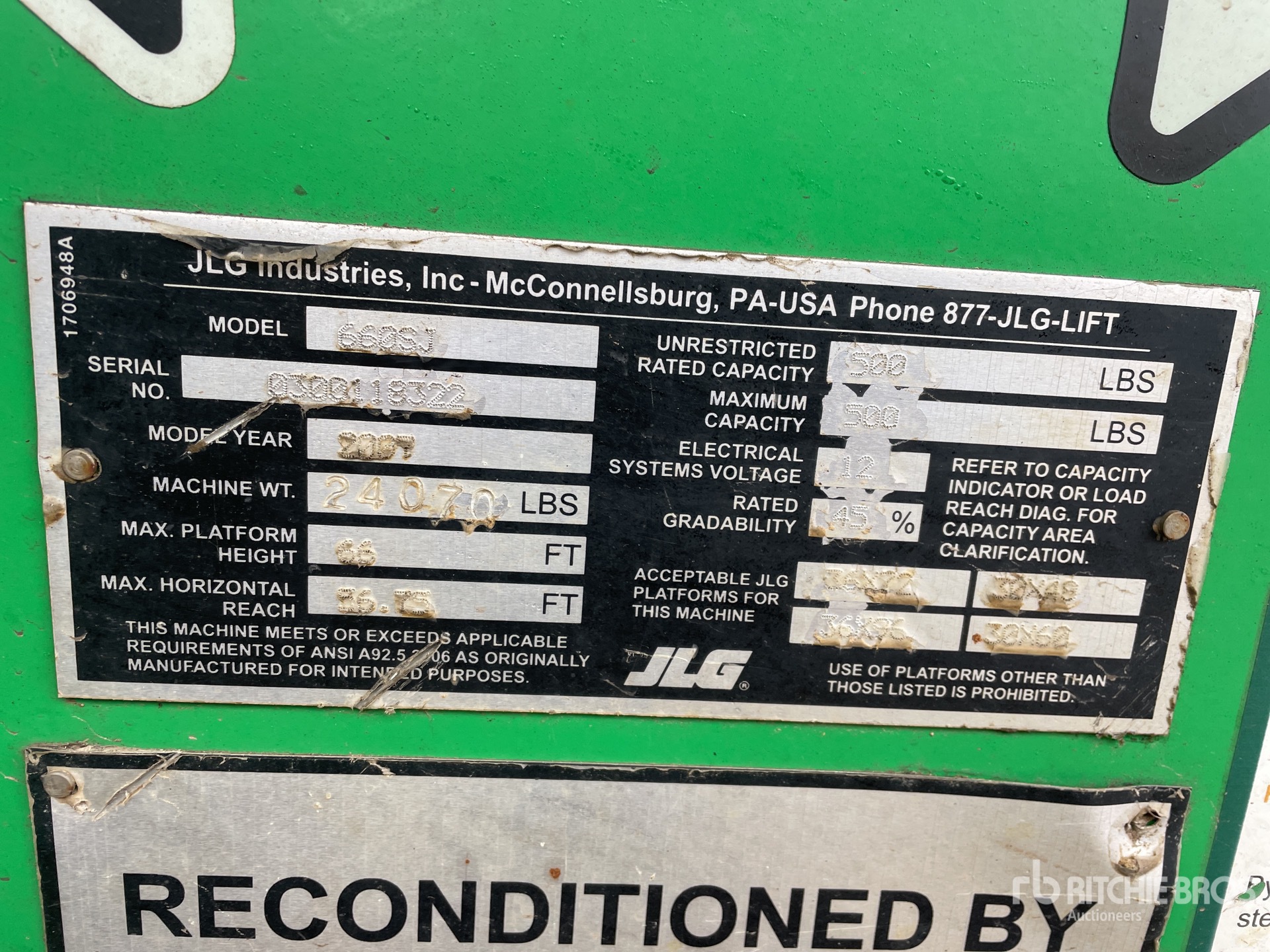 The detailed equipment information is limited in scope, and Ritchie Bros. Auctioneers has not inspected any aspects or components of the equipment other than those expressly set forth herein. Unless expressly stated, we make no representations or warranties, express or implied, concerning the equipment or its components, including without limitation any representations or warranties concerning functionality, conformity or compliance with any safety standard or requirement of any applicable authority or regulatory body, fitness for any particular purpose, or merchantability. You are strongly advised to perform your own detailed inspection of the equipment prior to bidding.
