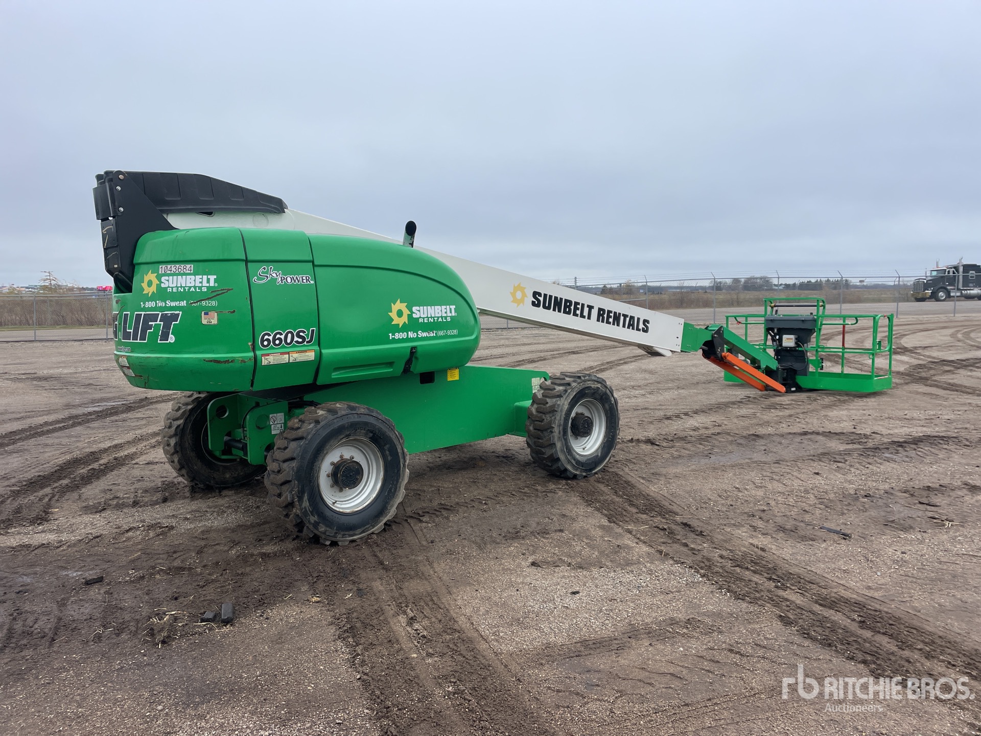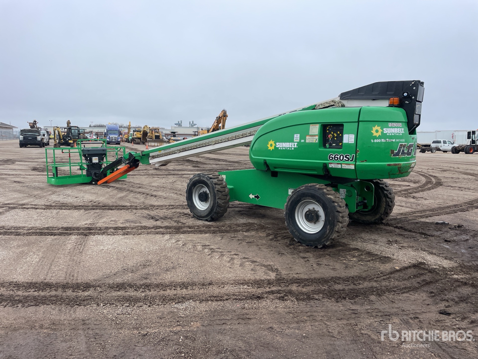66 ft Max Platform Height, 500 lb Max Weight Capacity, Jib, Power to Platform, Onboard Generator, Deutz F4M2011 4 Cylinder 65 hp 3.1 L Diesel Engine, 15-19.5 Tires