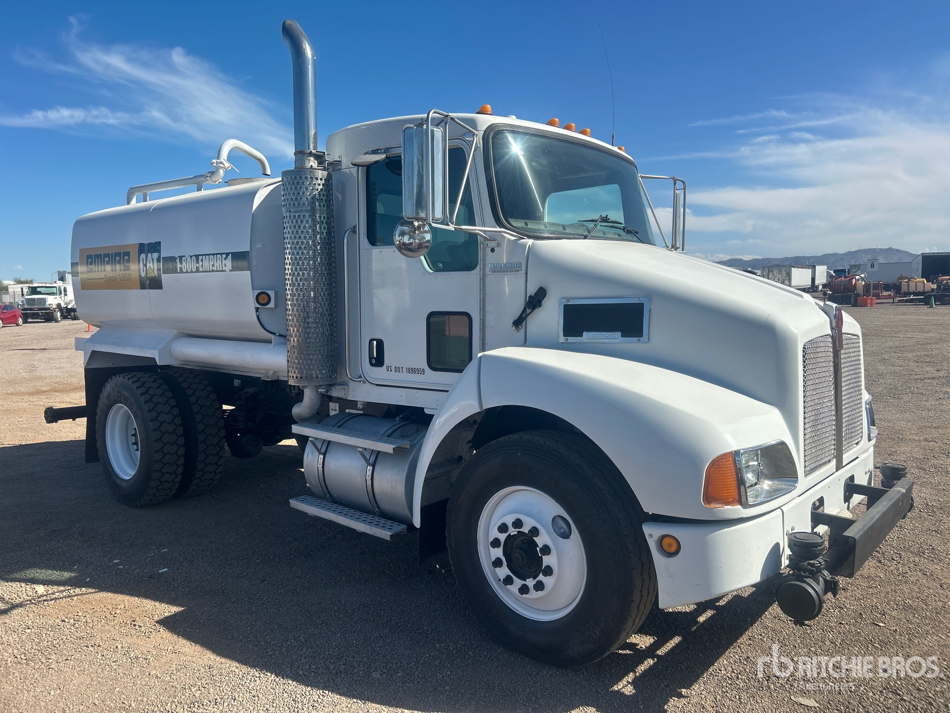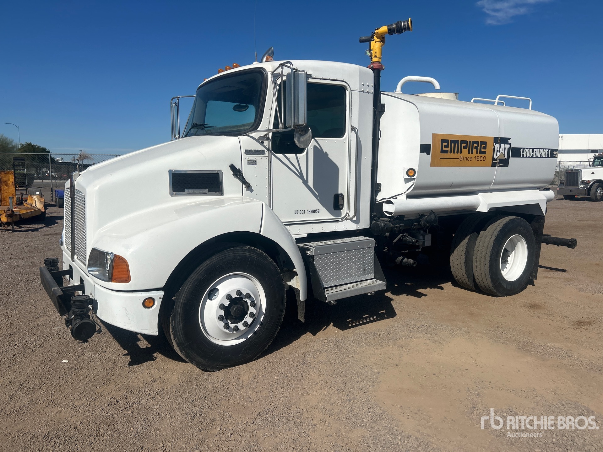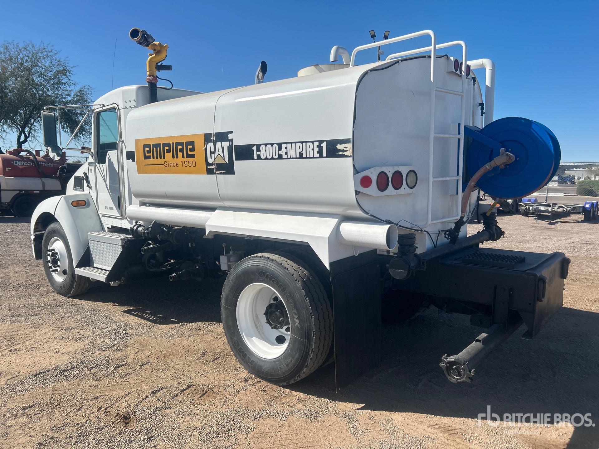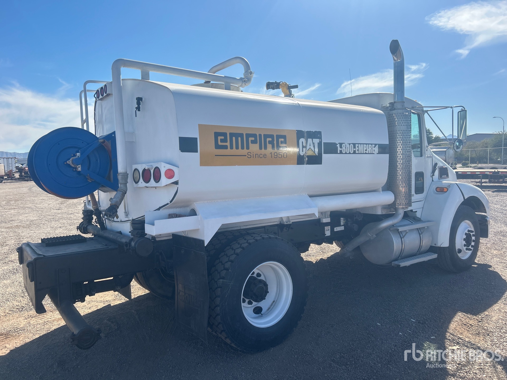 Cat C7 6 Cylinder 7.2 L Diesel Engine, 9359 Engine hrs, Eaton Fuller 6-Speed Manual Transmission, 12000 lb Front Axle, 21000 lb Rears, 33000 lb GVWR, 11R22.5, Spring Suspension, 152 in Wheelbase, PTO, Steel Tank, PTO Driven Pump, 5 ft 8 in, Spray Bar, Hose Reel, In-Cab Remote Controlled Water Cannon, Front Spray, Rear Spray, Side Spray