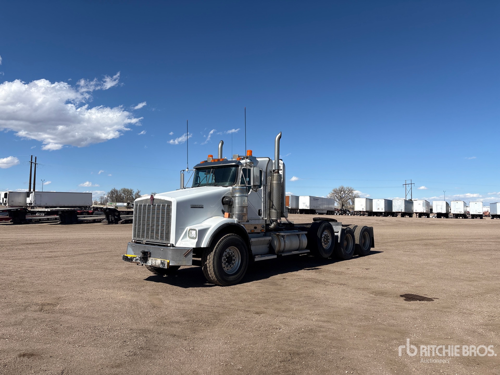 Located in Lane 9 Spot 9, Cat C15 Engine, 3242.6 Engine hrs, RTL022918B Manual Transmission, 20000 lb Front Axle, 86000 lb GVWR, 224 in Wheelbase, Air Suspension, Air Lift Pusher Axle, 425/65R22.5 Front Tires, 11R24.5 Rear Tires, Air Sliding 5th Wheel, Dual Fuel Tanks, Headache Rack