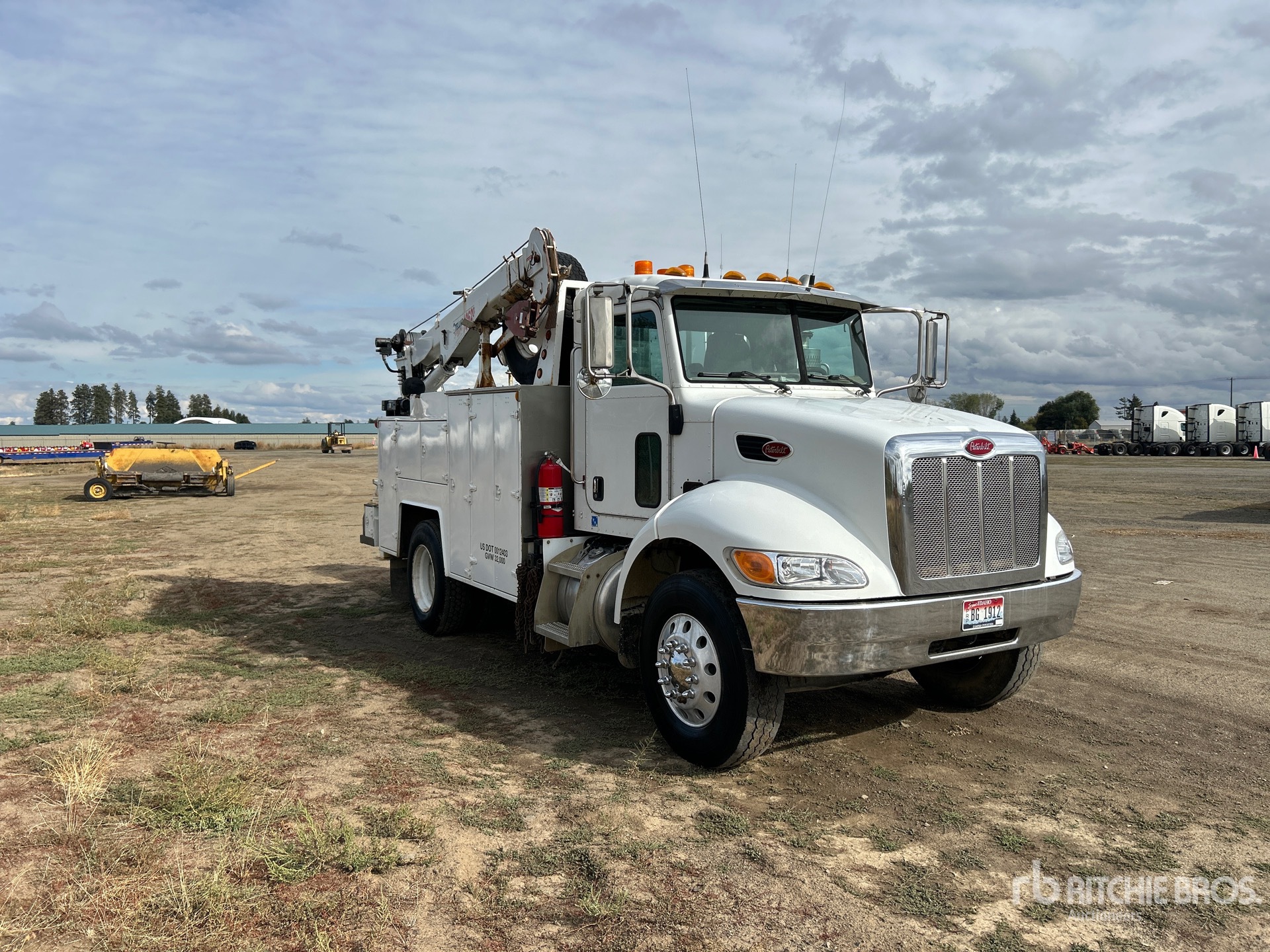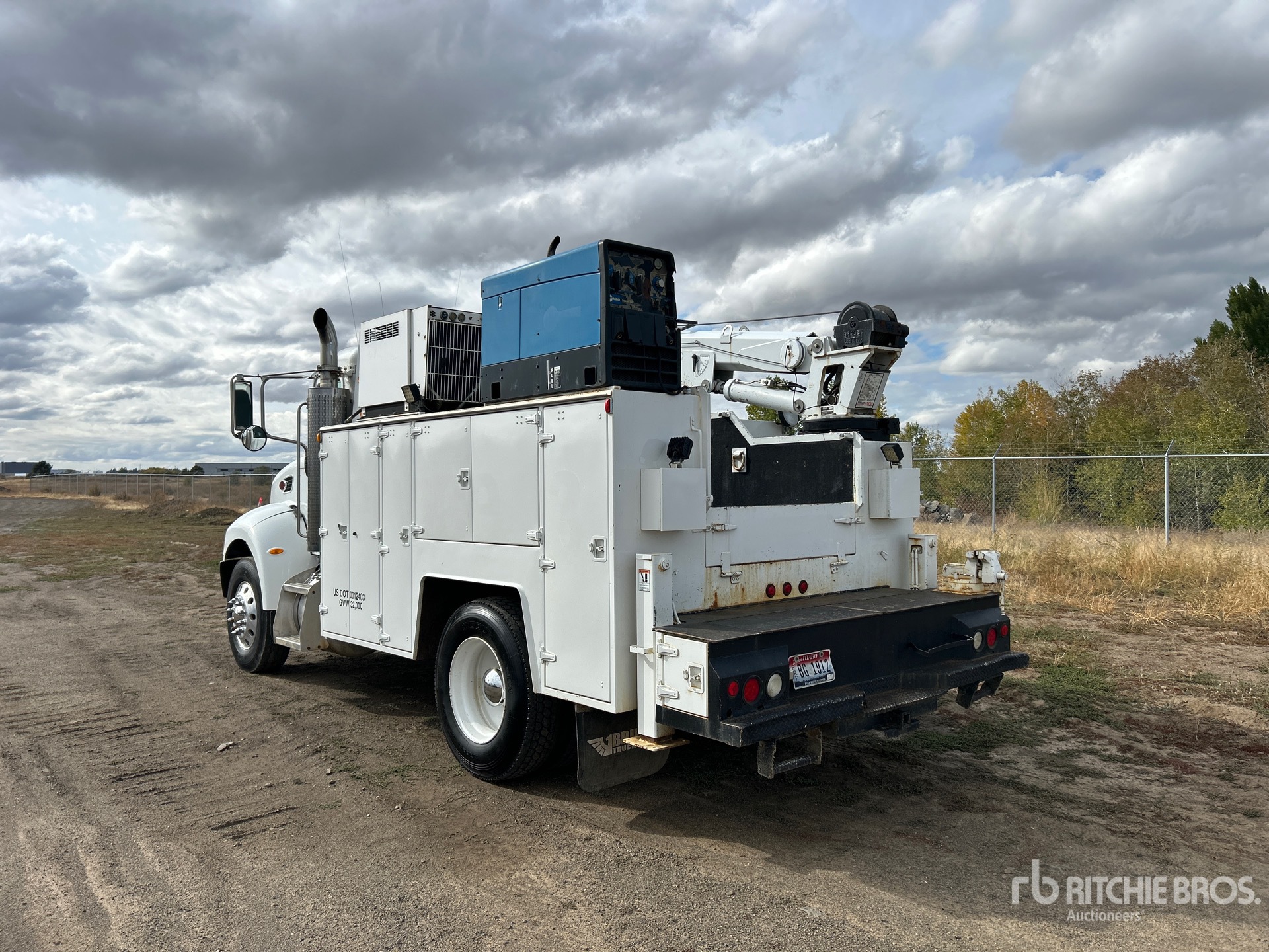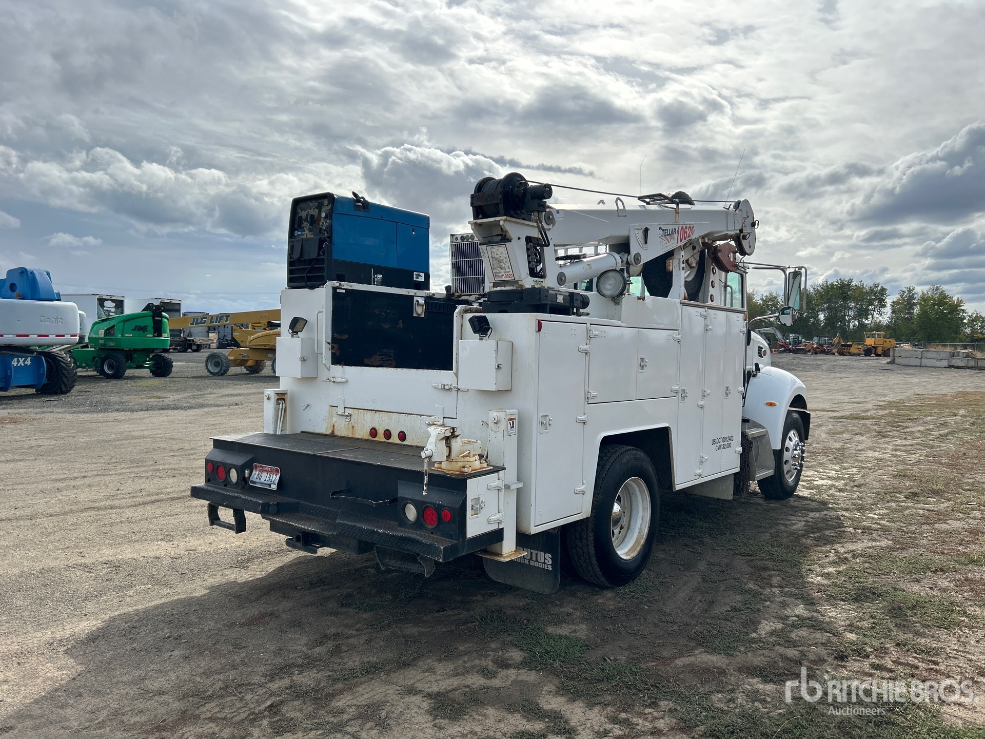 Cat C7 6 Cylinder Dual Fuel Engine, Exhaust Brake, Eaton Fuller FR9210B 10-Speed Manual Transmission, Differential Lock, 12000 lb Front Axle, 20000 lb Rears, Dana S21-1700 Drive Axles, 3.91:1 Axle Ratio, 32000 lb GVWR, 11R22.5 Front Tires, 10R22.5 Rear Tires, Spring Suspension, 155 in Wheelbase, PTO, 11 ft Body, Hydraulic Stabilizers, Stellar 10620 10000 lb 3 Section Hydraulic Crane, Wireless Remote Control, VMAC Hydraulic Air Compressor, Miller Bobcat 250 Gasoline Welder