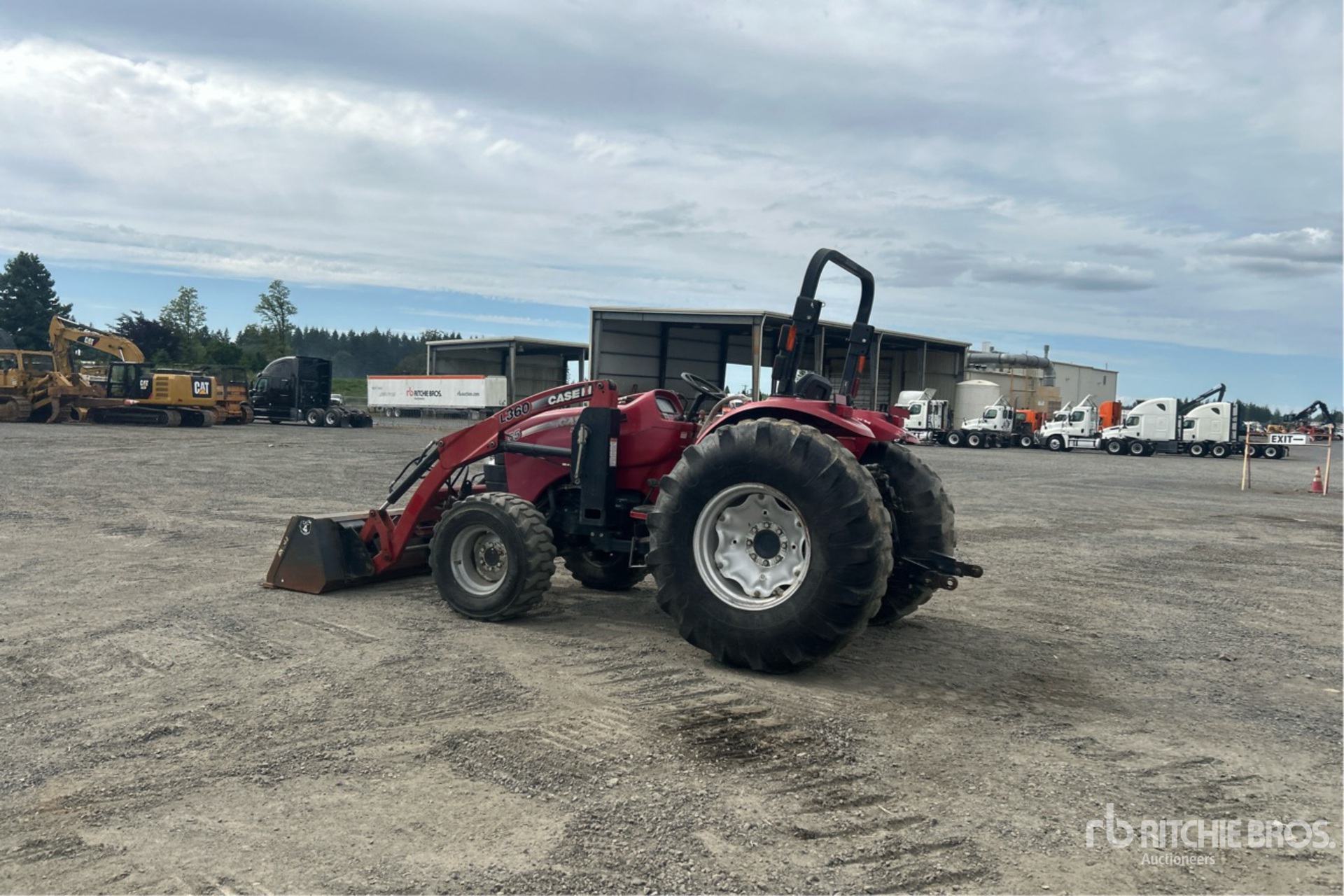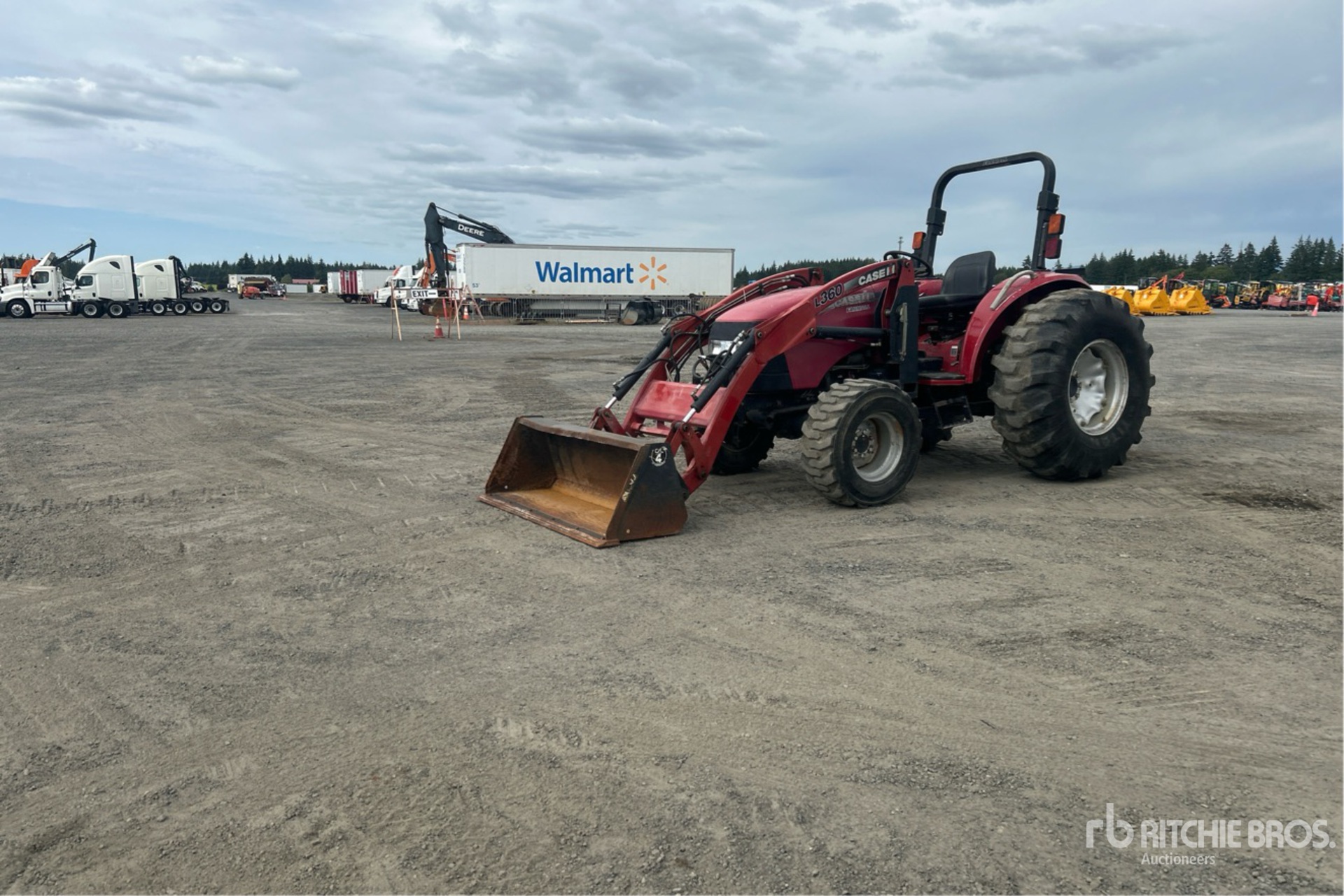 12 Forward 12 Reverse, Synchronized Shuttle, Forward/ Reverse Shuttle, 55 hp Engine, Case IH L360 Loader w/Joystick, Quick Coupler, 61 in Bucket, Rear Remotes, 540 PTO, 3-Point Hitch, 12x16.5 Front Tires, 18.4-24 Rear Tires