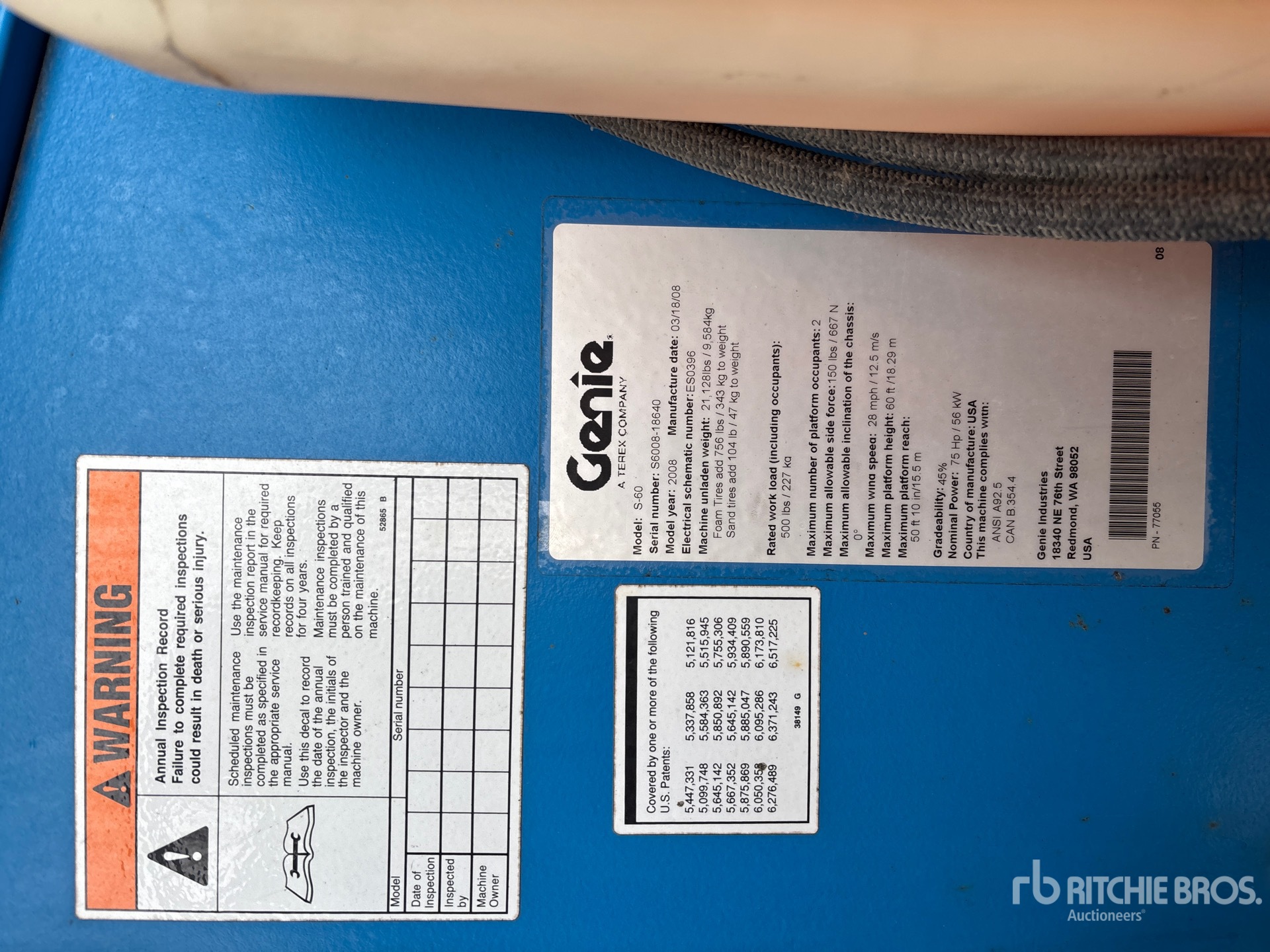 The detailed equipment information is limited in scope, and Ritchie Bros. Auctioneers has not inspected any aspects or components of the equipment other than those expressly set forth herein. Unless expressly stated, we make no representations or warranties, express or implied, concerning the equipment or its components, including without limitation any representations or warranties concerning functionality, conformity or compliance with any safety standard or requirement of any applicable authority or regulatory body, fitness for any particular purpose, or merchantability. You are strongly advised to perform your own detailed inspection of the equipment prior to bidding.