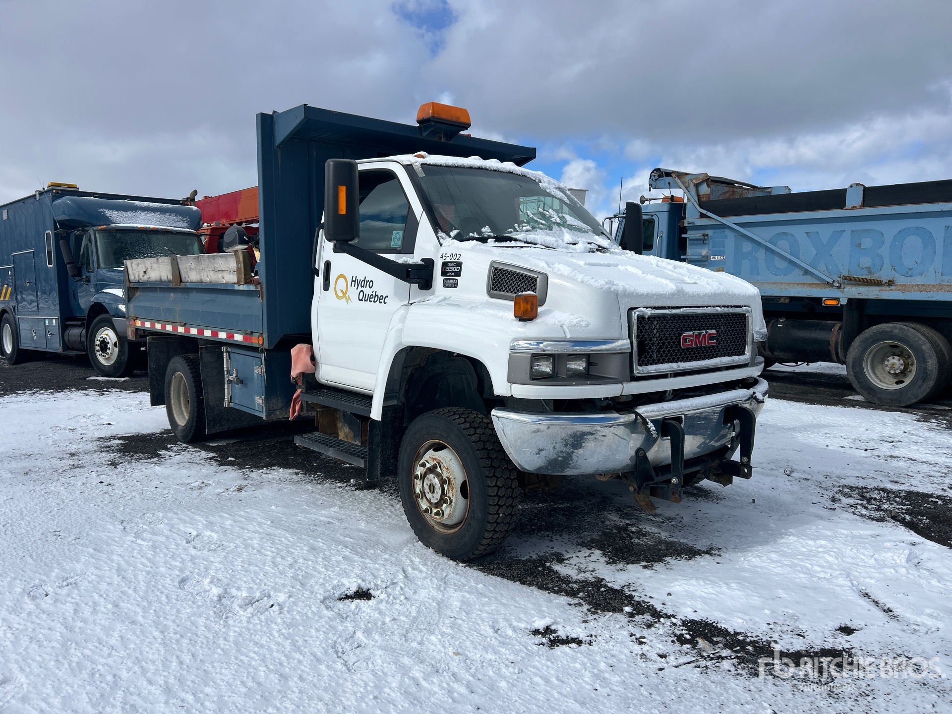 V8 6.6 L Diesel 300 hp Engine, US EPA Label, Automatic Transmission, 8000 lb Front Axle, 13500 lb Rears, 8845 kg GVWR, 245/70R19.5 Front Tires, 245/70R19.5 Rear Tires, Spring Suspension, 152 in Wheelbase, PTO, Fisher 10 ft Hydraulic Reversing Plow, 11 ft Long x 2 ft High Steel Body, Manual Roll Tarp, Pintle Hitch