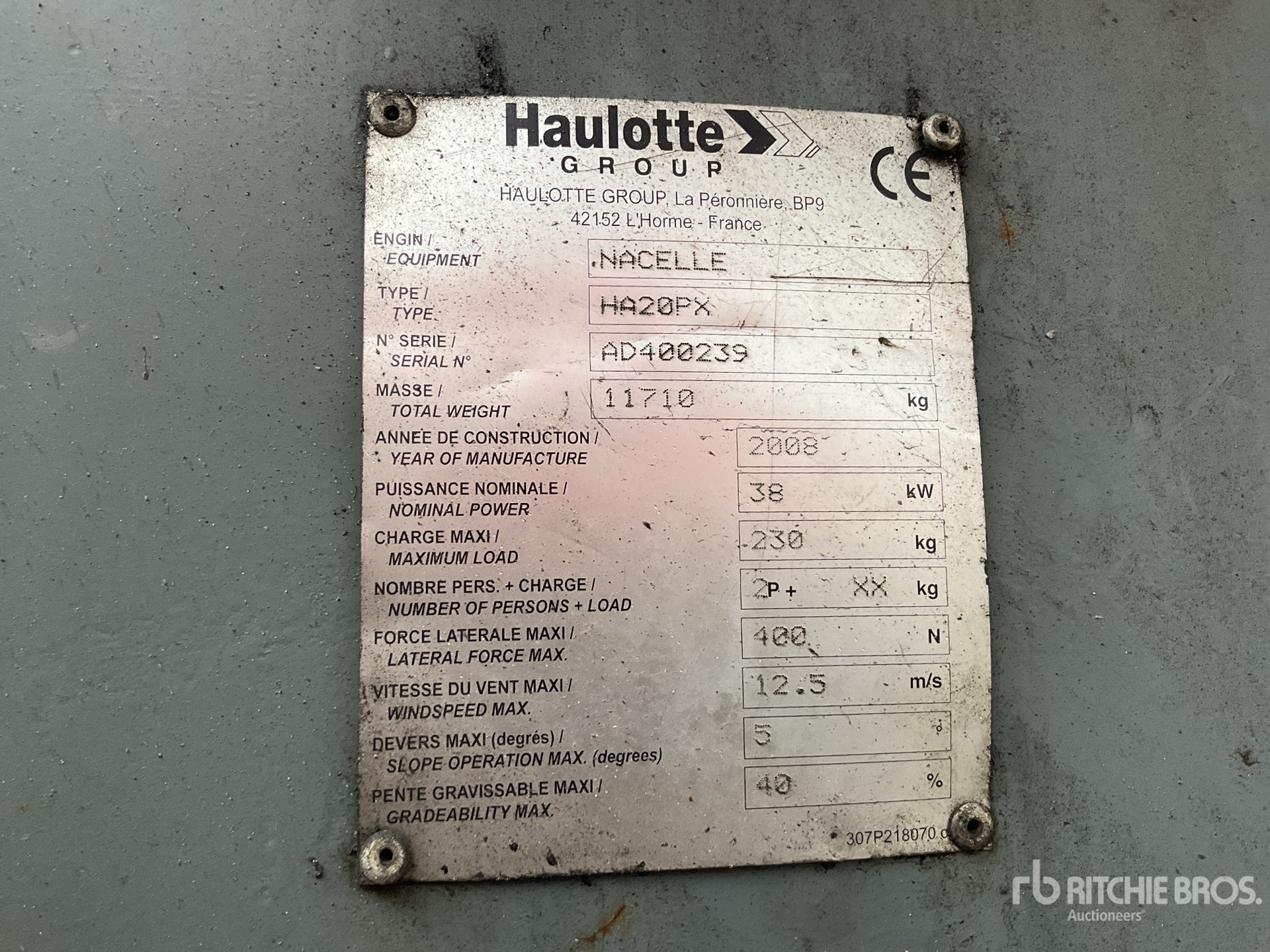 The detailed equipment information is limited in scope, and Ritchie Bros. Auctioneers has not inspected any aspects or components of the equipment other than those expressly set forth herein. Unless expressly stated, we make no representations or warranties, express or implied, concerning the equipment or its components, including without limitation any representations or warranties concerning functionality, conformity or compliance with any safety standard or requirement of any applicable authority or regulatory body, fitness for any particular purpose, or merchantability. You are strongly advised to perform your own detailed inspection of the equipment prior to bidding.
