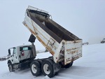Cummins 6 Cylinder Diesel Engine, 18595 Engine hrs, Engine Brake, Allison Automatic Transmission, Differential Lock, 8164 kg Front Axle, 18142 kg Rears, Air Ride Cab, Aluminum Front Wheels, 11R24.5, Air Assist Front Suspension, Hendrickson Haulmaax Rubber over Walking Beam Suspension, 205 in Wheelbase, PTO, 15 ft Long x 3 ft 6 in High Steel Body, Electric Roll Tarp