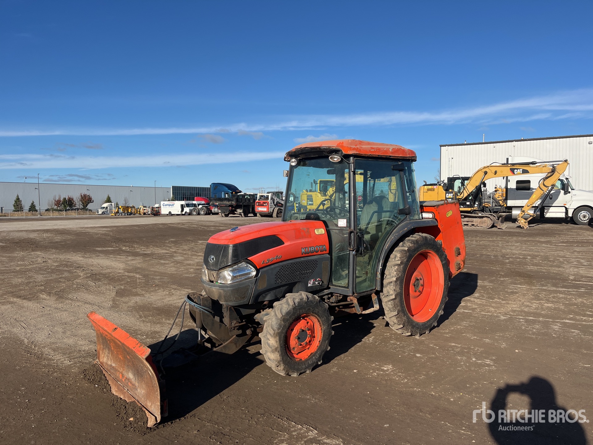 Enclosed Cab, Differential Lock, Hydrostatic Drive, 40 hp Engine, Front Blade, 44 in drop sander, 8-16 Front Tires, 9.5-32 Rear Tires
