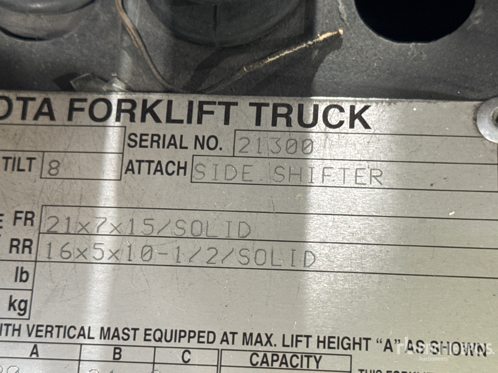 2 Stage Mast, Full Free Lift, 80 in Max Lift Height, 42 in Forks, Side Shift, 2008 US EPA Label, Toyota 4 Cylinder 38 kW 2.2 L LPG Engine, EQUIPMENT-FROM-YELLOW-CORP