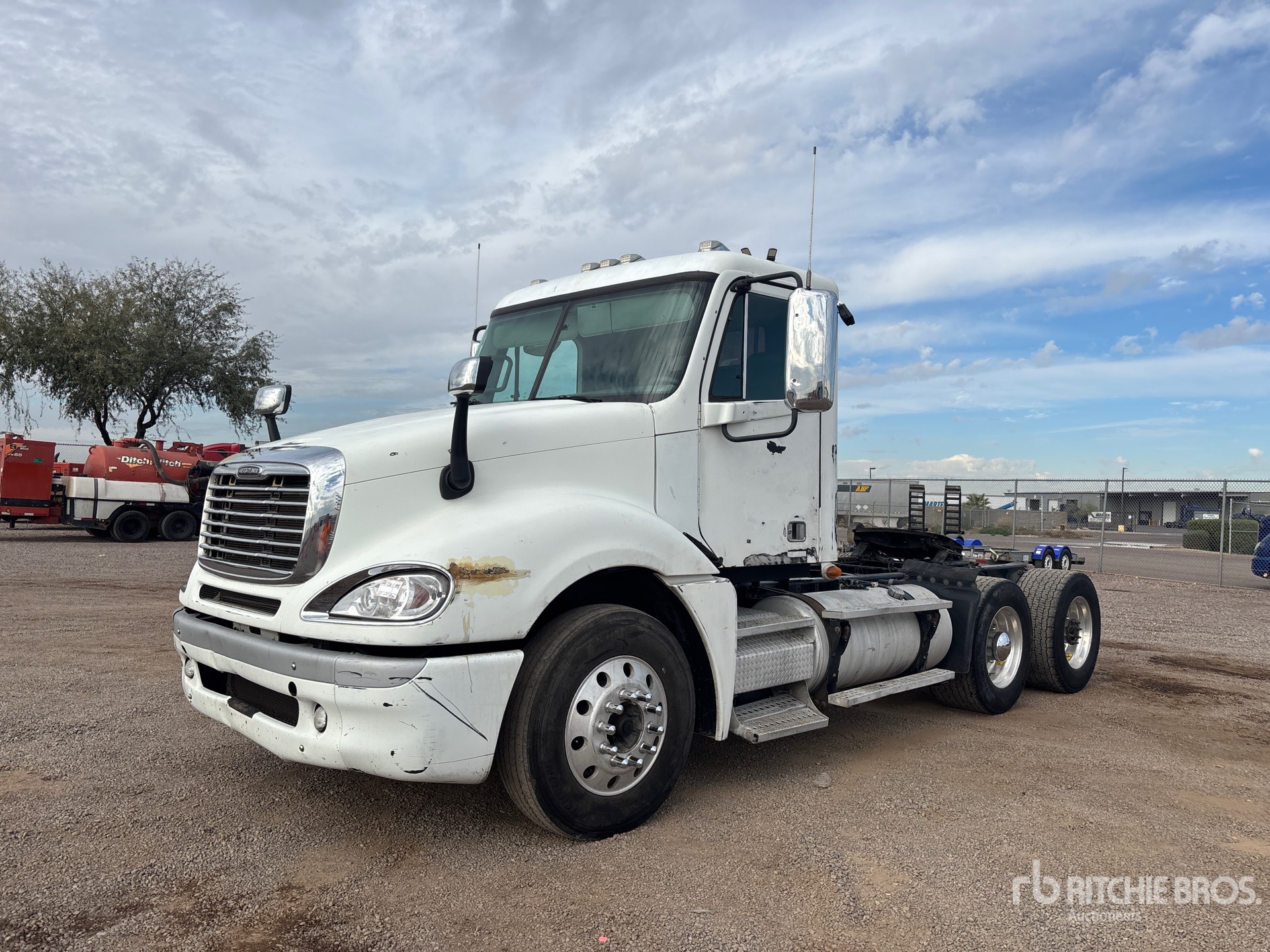 Located in Lane 14 Spot 56, Detroit Series 60 425 hp Engine, 2008 US EPA Label, 24070 Engine hrs, Eaton Fuller FRO-16210C 10-Speed Manual Transmission, 12000 lb Front Axle, 40000 lb Rears, 52000 lb GVWR, 178 in Wheelbase, Air Suspension, 275/80R22.5 Front Tires, 445/50R22.5 Super Singles Rear Tires, Air Sliding 5th Wheel, Dual Fuel Tanks