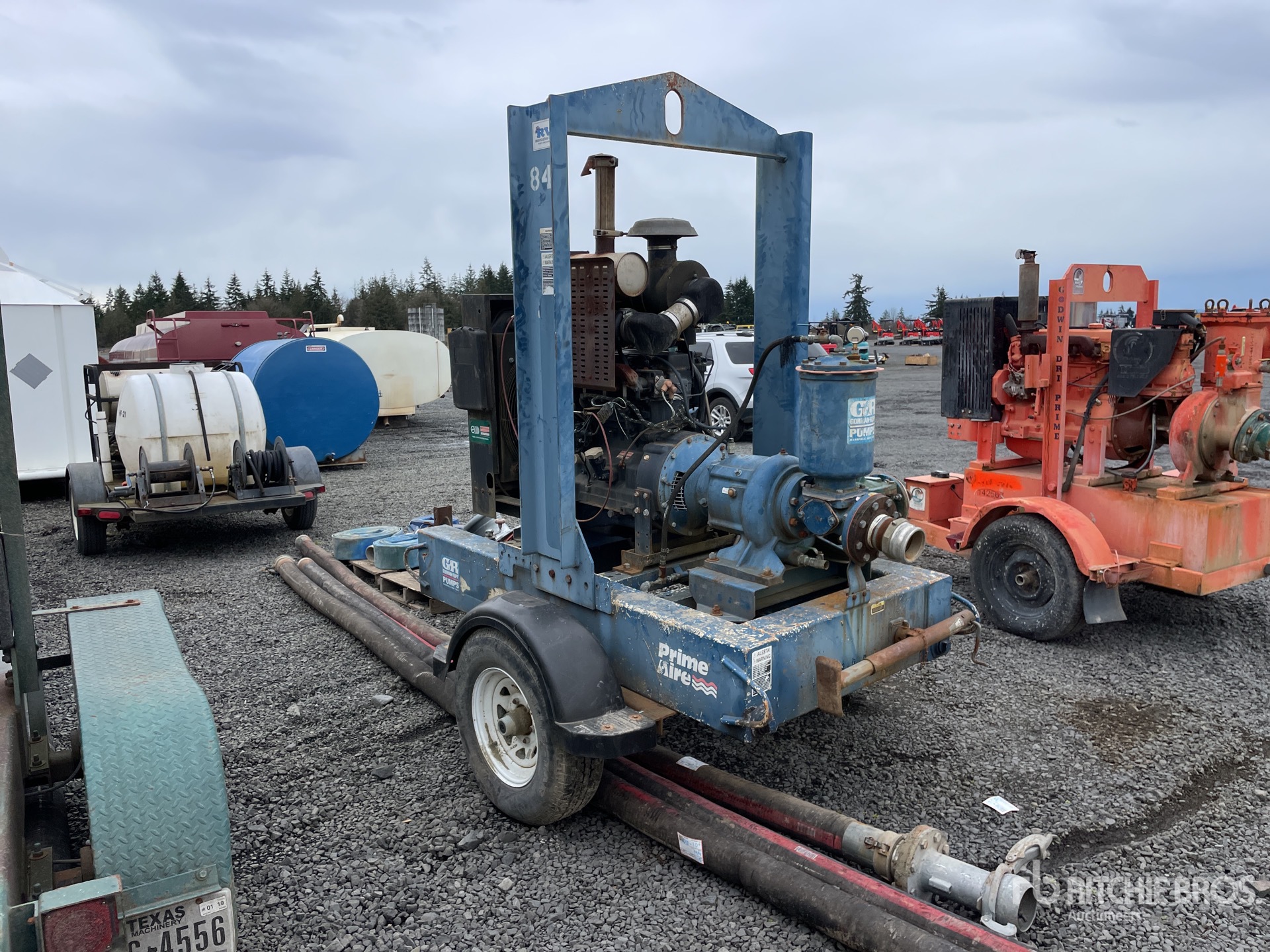 4 in Intake, 4 in Discharge, Centrifugal Water Pump, 2008 US EPA Label, John Deere 4045TF280B 4 Cylinder 60 kW 4.5 L Diesel Engine, Ball Hitch Carrier Trailer
