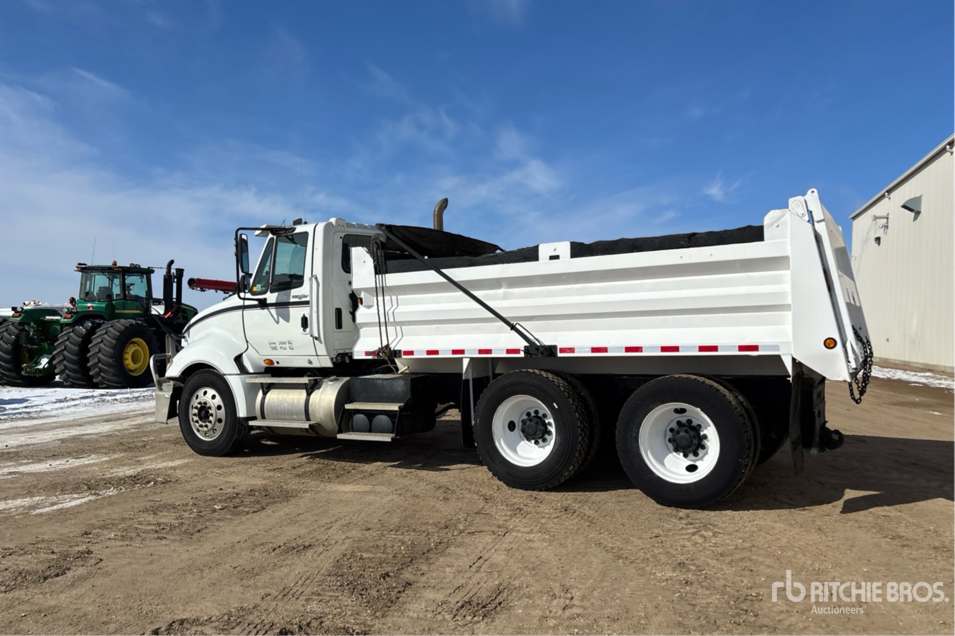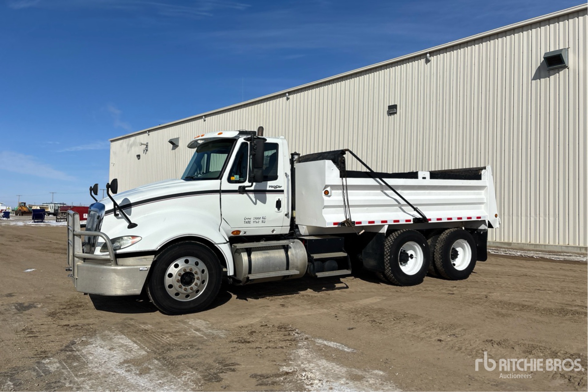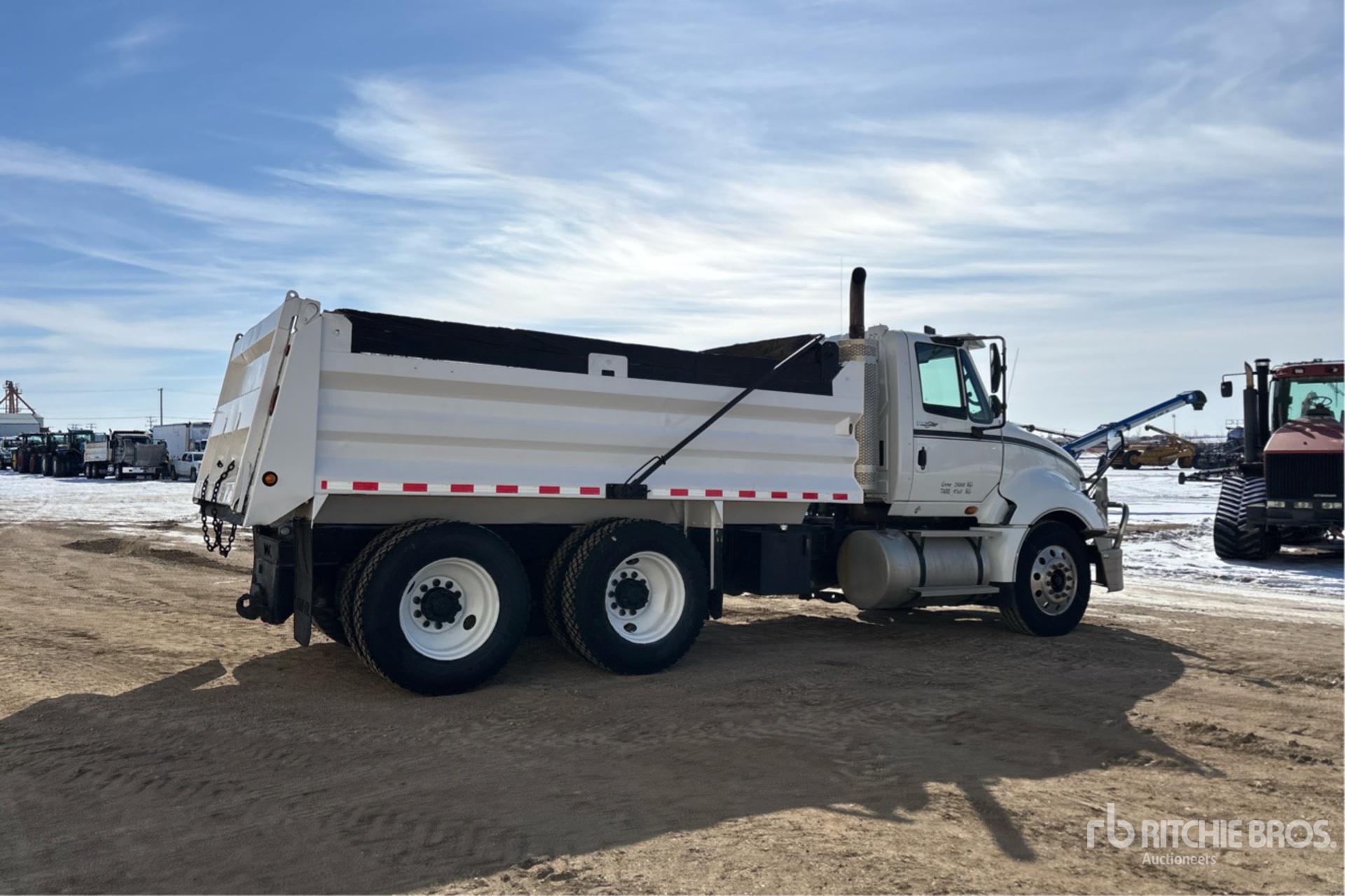 Cummins ISX 6 Cylinder 15 L Diesel 450 hp Engine, 2008 US EPA Label, 11708 Engine hrs, Engine Brake, Eaton Fuller UltraShift Automatic Transmission, Differential Lock, 12000 lb Front Axle, 40000 lb Rears, 52000 lb GVWR, Air Ride Cab, 11R24.5, Air Ride Suspension, 201 in Wheelbase, PTO, 15 ft Long x 3 ft 2 in High Steel Body, Manual Roll Tarp, Pintle Hitch