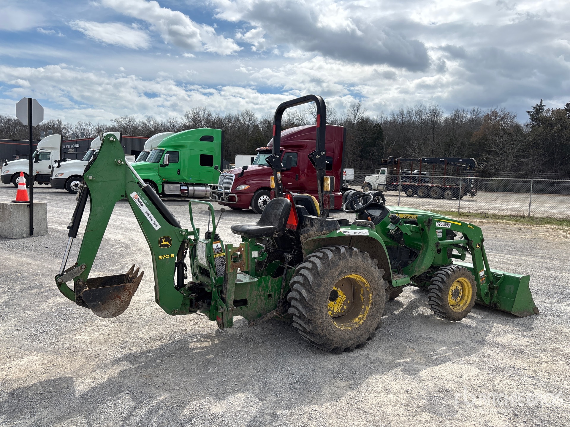 1 Forward 1 Reverse, Hydrostatic Drive, 2021 US EPA Label, John Deere 300E Loader, 540 PTO, John Deere 370B Backhoe Attachment With 16 in Bucket, 25x8.50-14 Front Tires, 16-19.5 Rear Tires