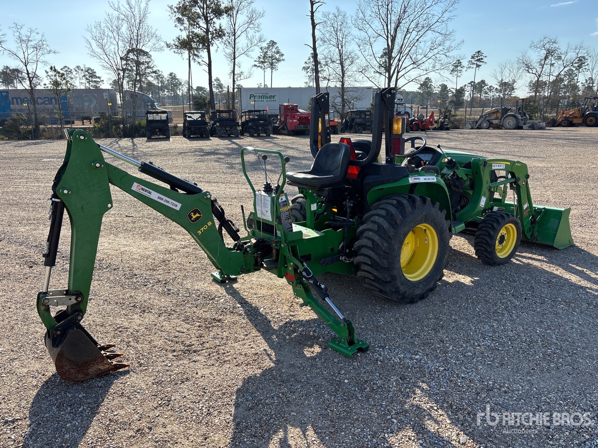 Differential Lock, Hydrostatic Drive, 31 hp Engine, 2021 US EPA Label, John Deere 300E Loader w/Joystick, 61 in Bucket, 540 PTO, John Deere 370B Backhoe Attachment With 15 in Bucket, 25x8.5-14 Front Tires, 15-19.5 Rear Tires