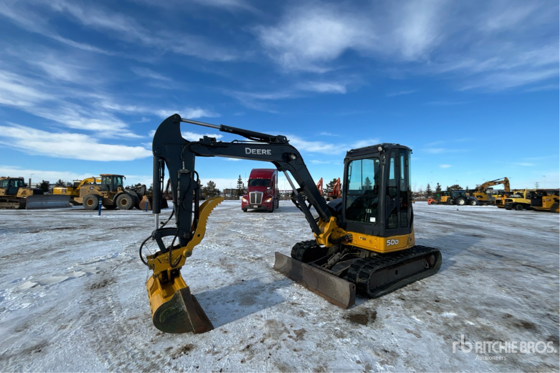 Enclosed Cab, Control Pattern Changer, 2008 US EPA Label, Positive Air Shutoff, 4 ft 6 in Stick, Backfill Blade, 16 in Rubber Tracks, Manual Quick Coupler, 42 in Hydraulic Tilting Bucket, Hydraulic Thumb, c/w wrist twist bucket