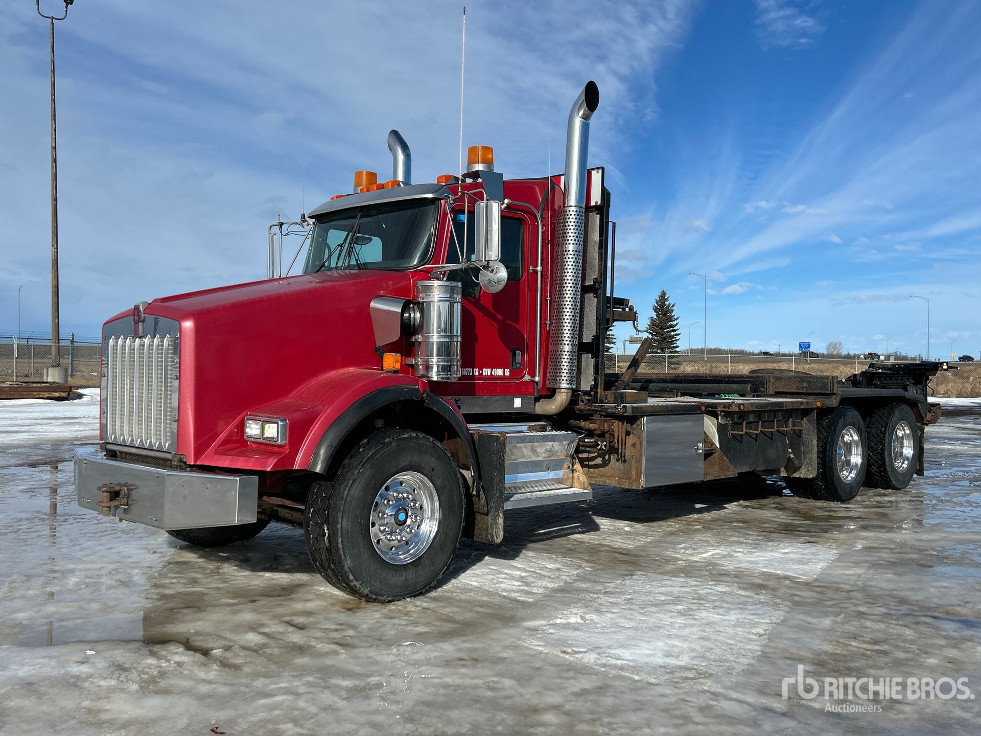 Located in Lane 37 Spot 10, Cummins ISX 6 Cylinder 15 L Diesel 525 hp Engine, 2008 US EPA Label, Eberspacher Engine Coolant Heater, 18555 Engine hrs, Engine Brake, Eaton Fuller RTLO-18918B 18-Speed Transmission, Double Differential Locks, 16000 lb Front Axle, 46000 lb Rears, Dana D46-170KPW Drive Axles, 4.30:1 Axle Ratio, 62000 lb GVWR, Aluminum Wheels, 425/65R22.5 Front Tires, 11R24.5 Rear Tires, Dual Steering Boxes, Double Frame, Air Assist Front Suspension, Neway Air Ride Suspension, 288 in Wheelbase, PTO, Tail Roll, Braden 60000 lb Winch, Texas Rigging, (2) Bunks , Equipment-from-Rice-Bros-Trucking-Ltd