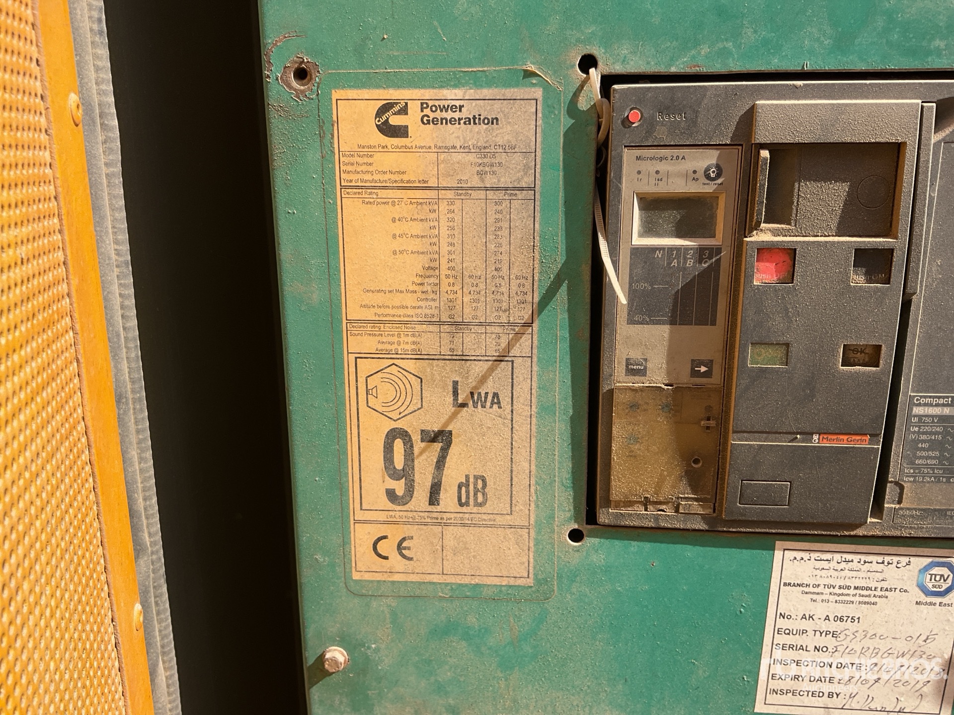 Cummins 6 Cylinder Diesel Engine, Sound Attenuated, Bottom Mounted Fuel Tank