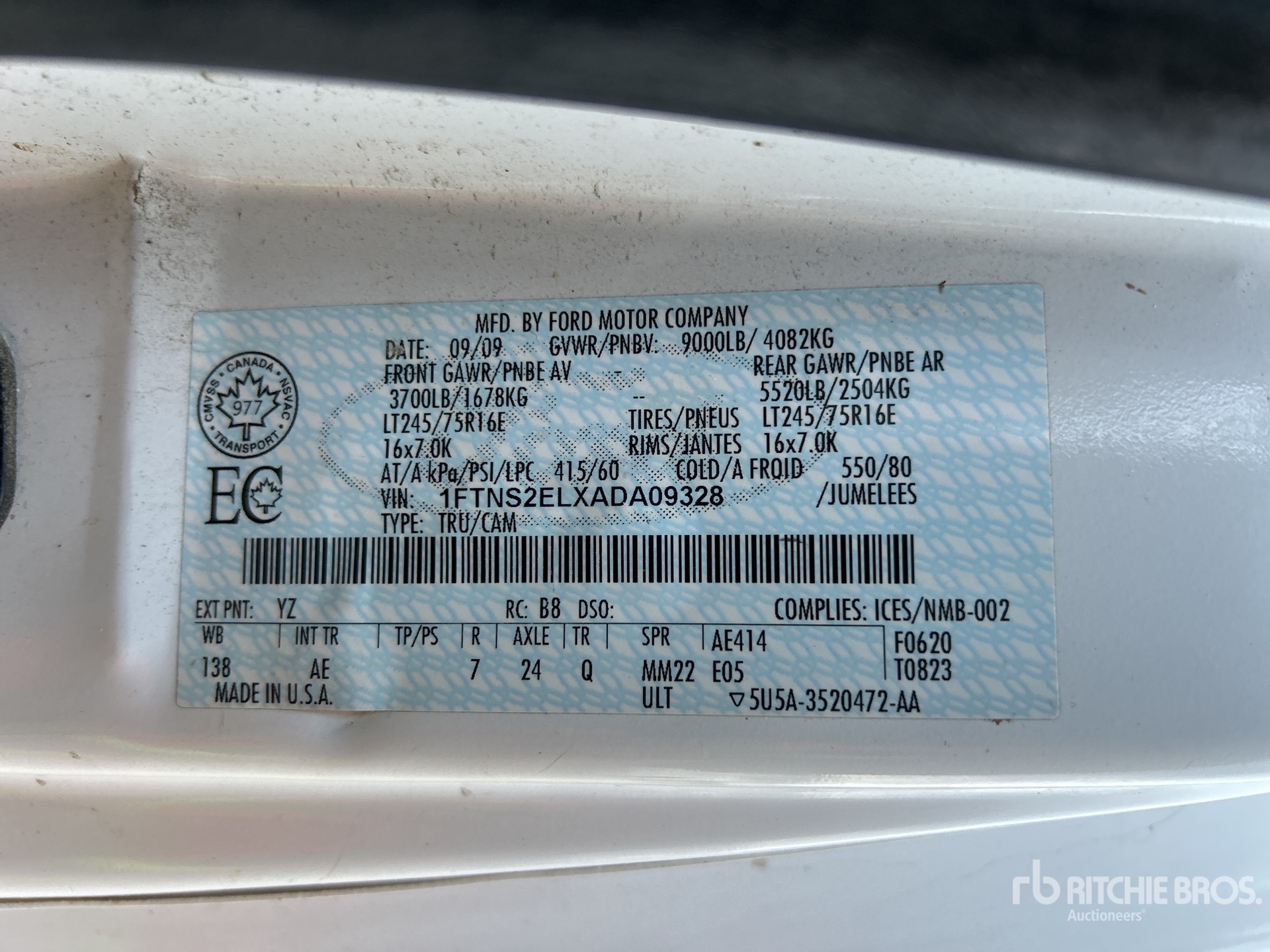 V8 5.4 L Gasoline Engine, 2010 US EPA Label, Automatic Transmission, 3700 lb Front Axle, 5520 lb Rears, 4082 kg GVWR, 245/75R16, Spring Suspension, 138 in Wheelbase, Center Mounted, One-Person Telescopic Boom