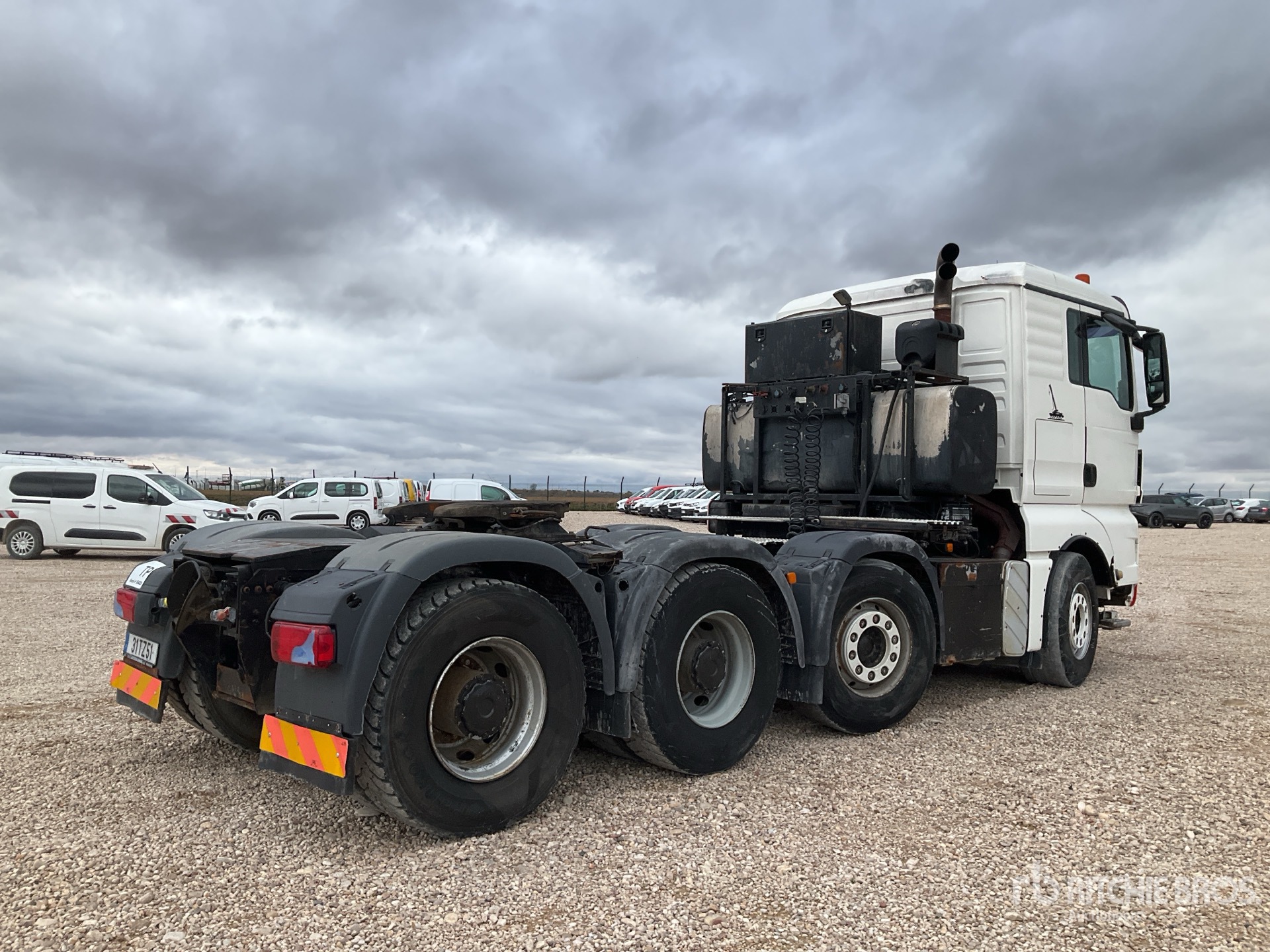 Diesel Engine, Requires AdBlue, Retarder, 16-Speed Manual Transmission, Double Differential Locks, 385/65R22.5 Front Tires, 315/80R22.5 Rear Tires, Spring Suspension, Steerable Air Lift 2nd Axle, 3.5" Sliding 5th Wheel, 105 Ton Pulling Capacity, ** Steering needs to be fixed **