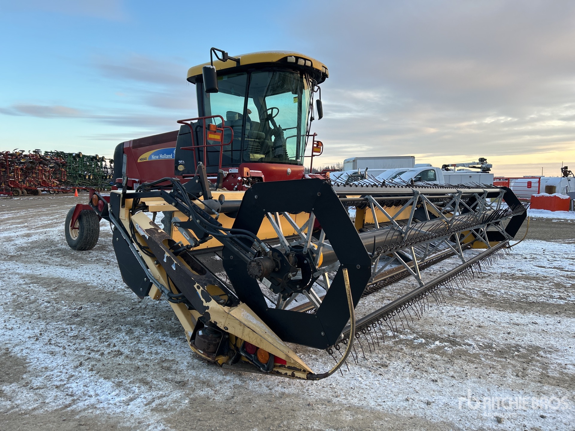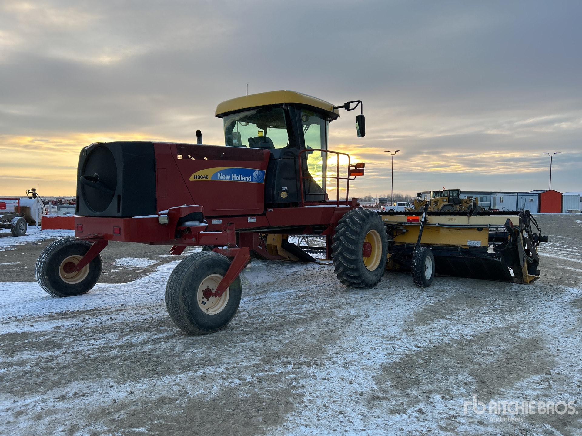 Enclosed Cab, Air Conditioner, Hydrostatic Drive, 18.4R26 Front Tires, 14L-16.1SL Rear Tires, Header S/N - 25WS085458, New Holland HB0025 25 ft Draper Header, P/U Reel, Hydraulic Fore & Aft, Cross Auger, Double Knife Drive