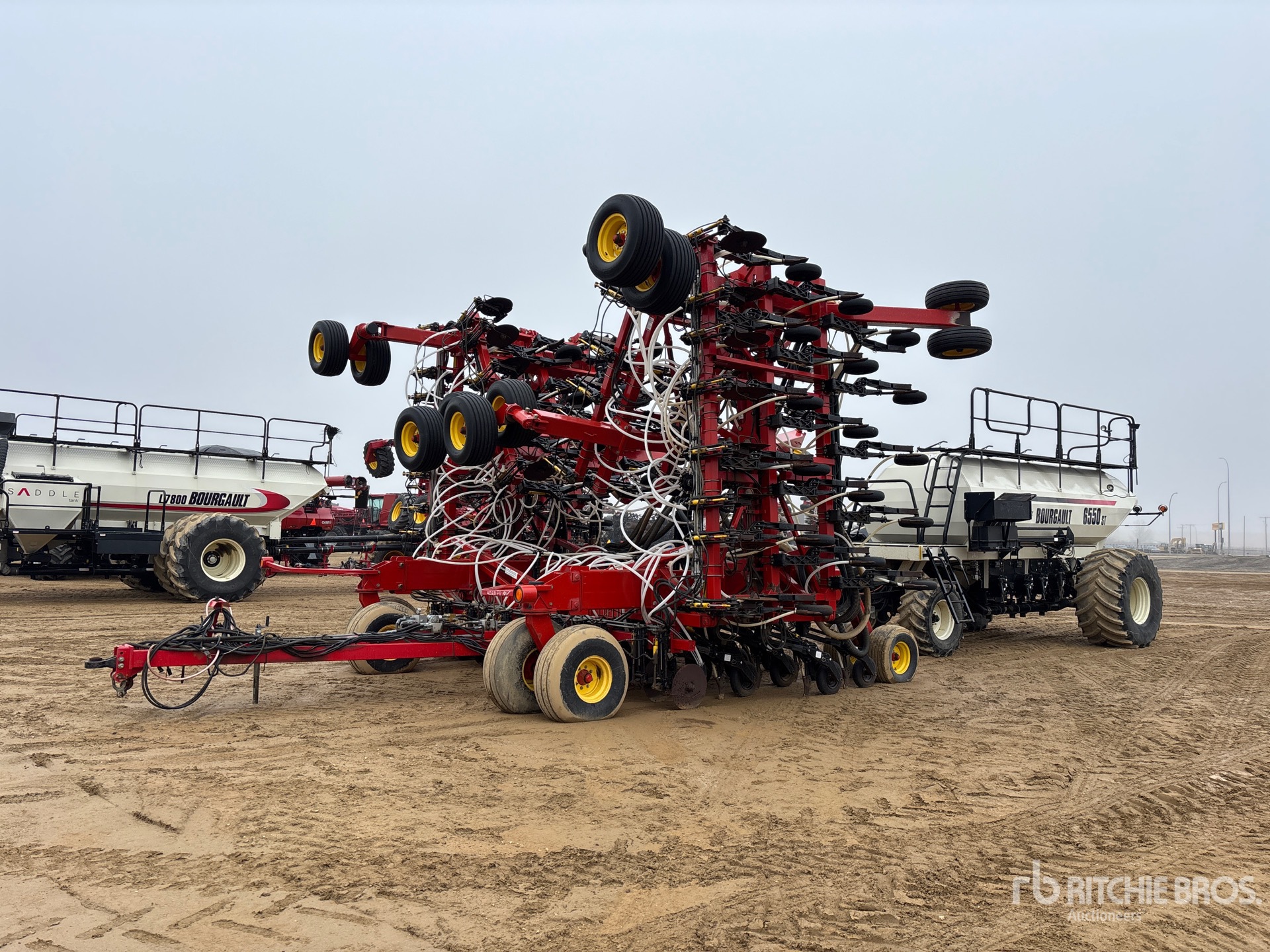 10 in Spacing, Double Shoot, Mid-Row Banding, Vansco Blockage Sensors, Pneumatic 4.5 in Packer, 18 in Discs, 2011 Bourgault 6550ST 550 bu 4 Compartment Tow-Behind Air Cart, Tank S/N 40343AS02 Double Fan, 10 in Auger Loading System, Bag Lift, Variable Rate Metering System, Bourgault 591 Display, 540/65R24 Front Tires 900/60R32 Rear Tires