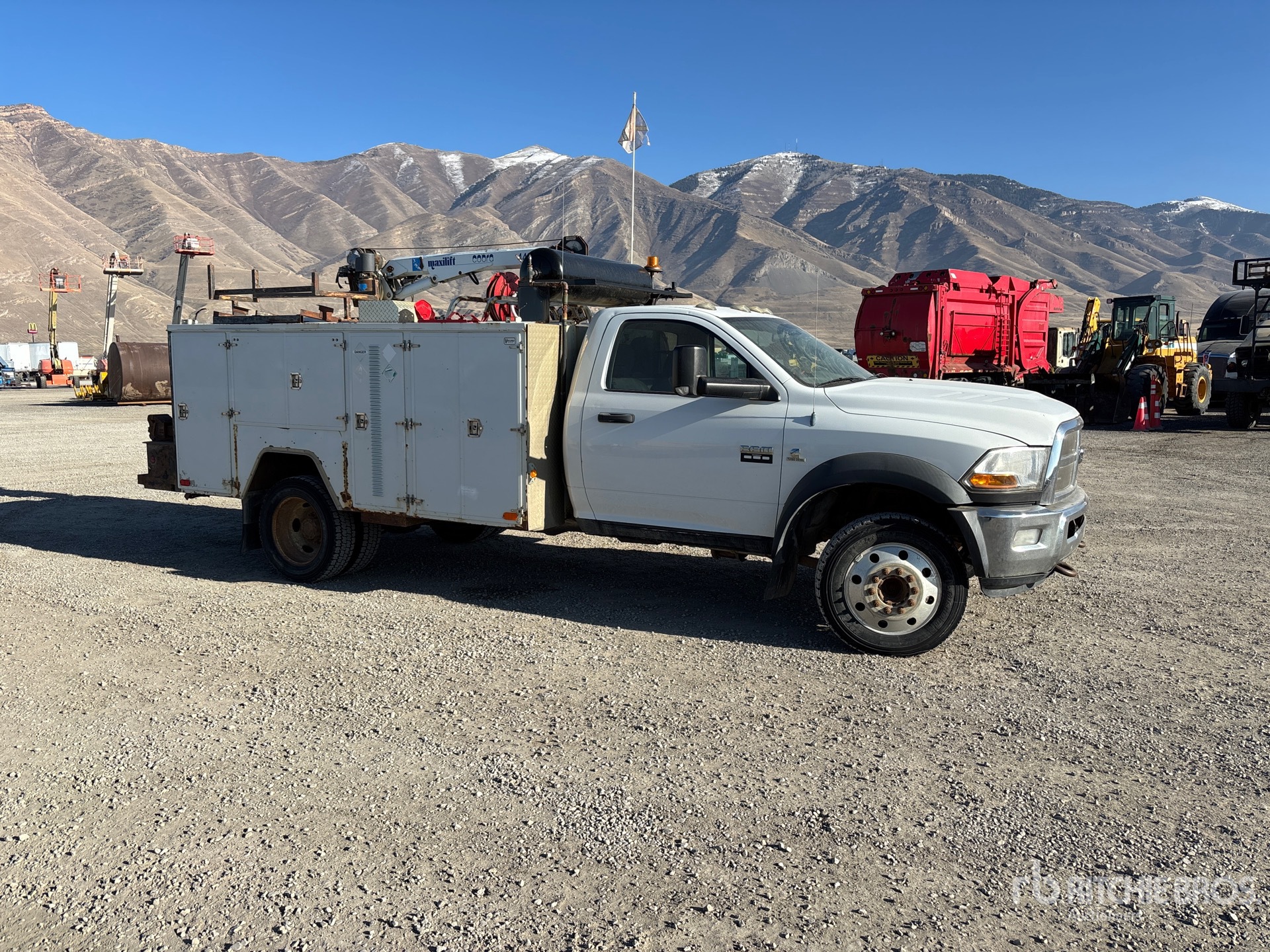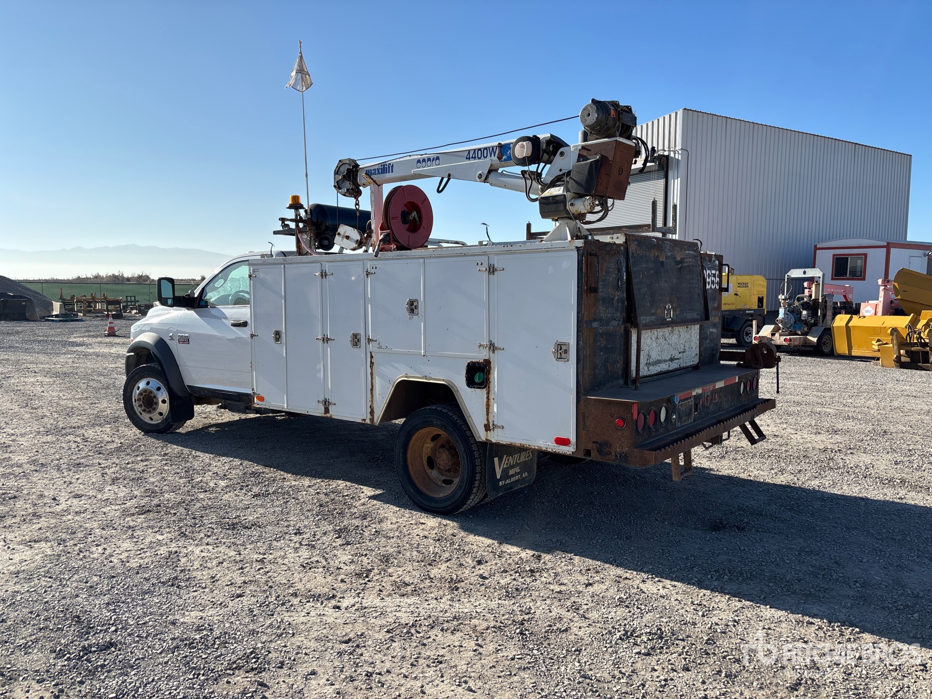 Located in Lane 12 Spot 2, Cummins 6.7 6 Cylinder Diesel Engine, Requires Diesel Exhaust Fluid, Engine Coolant Heater, 13941 Engine hrs, Exhaust Brake, Automatic Transmission, Differential Lock, 7000 lb Front Axle, 13500 lb Rears, 19500 lb GVWR, 225/70R19.5 Front Tires, 225/70R19.5 Rear Tires, Spring Suspension, 165 in Wheelbase, 2010 Ventures Service bed 21 ft Body, 2008 4400w e12 4400 lb 1 Section Hydraulic Crane