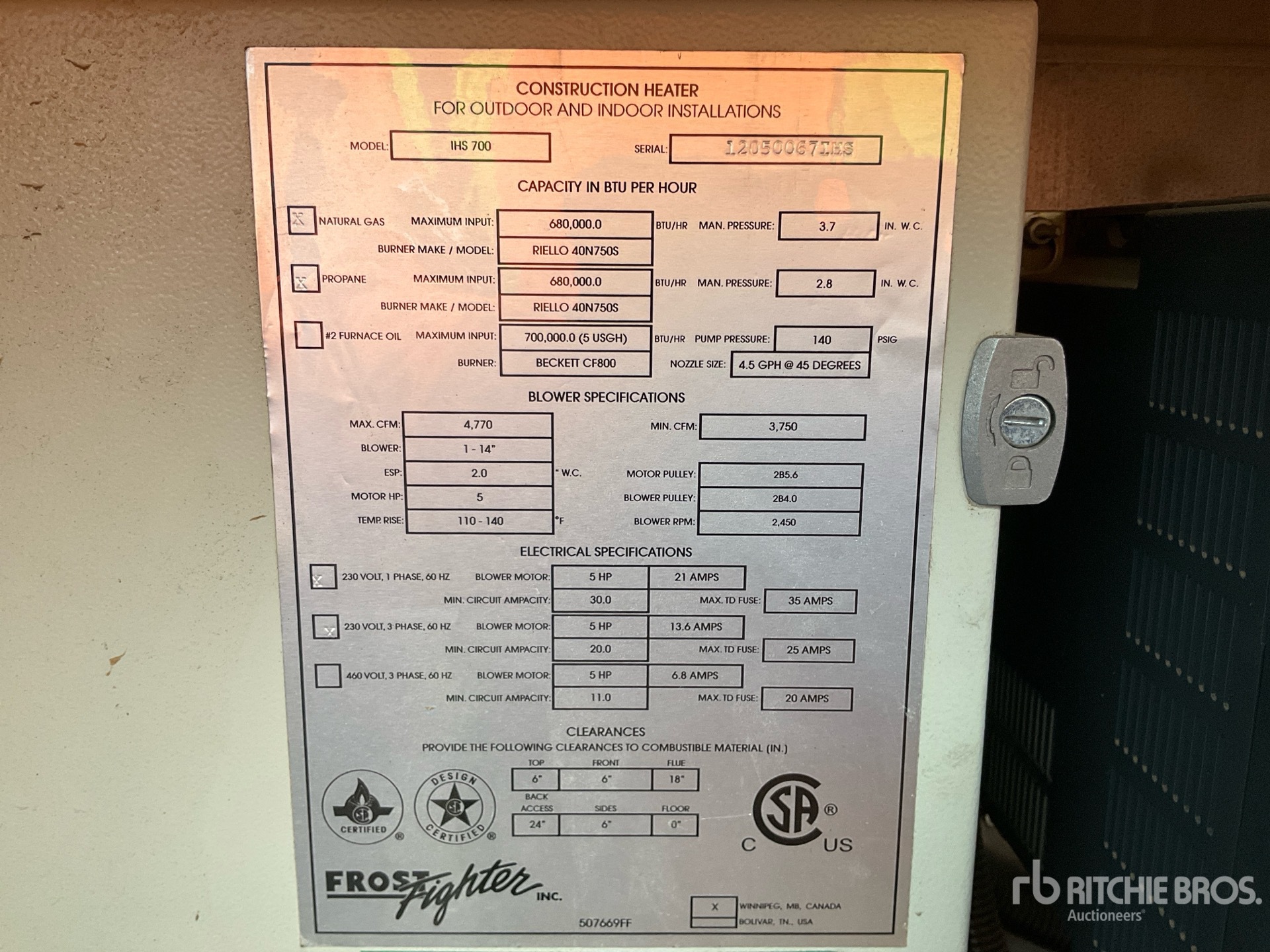 2011 Frost Fighter IHS700 680000 BTU Space Heater