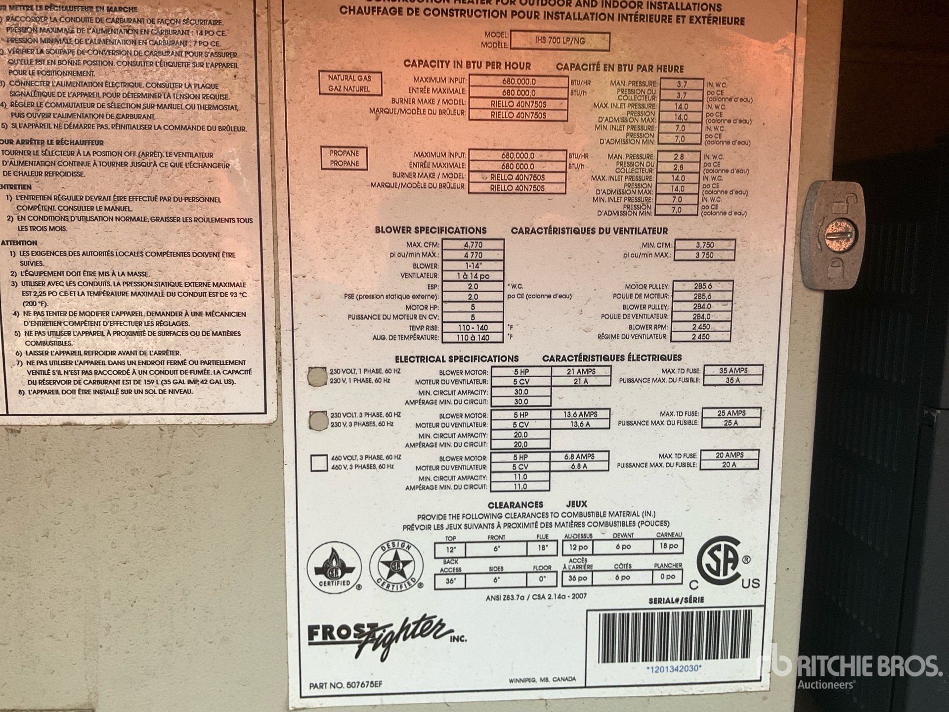 2011 Frost Fighter IHS700 680000 BTU Space Heater