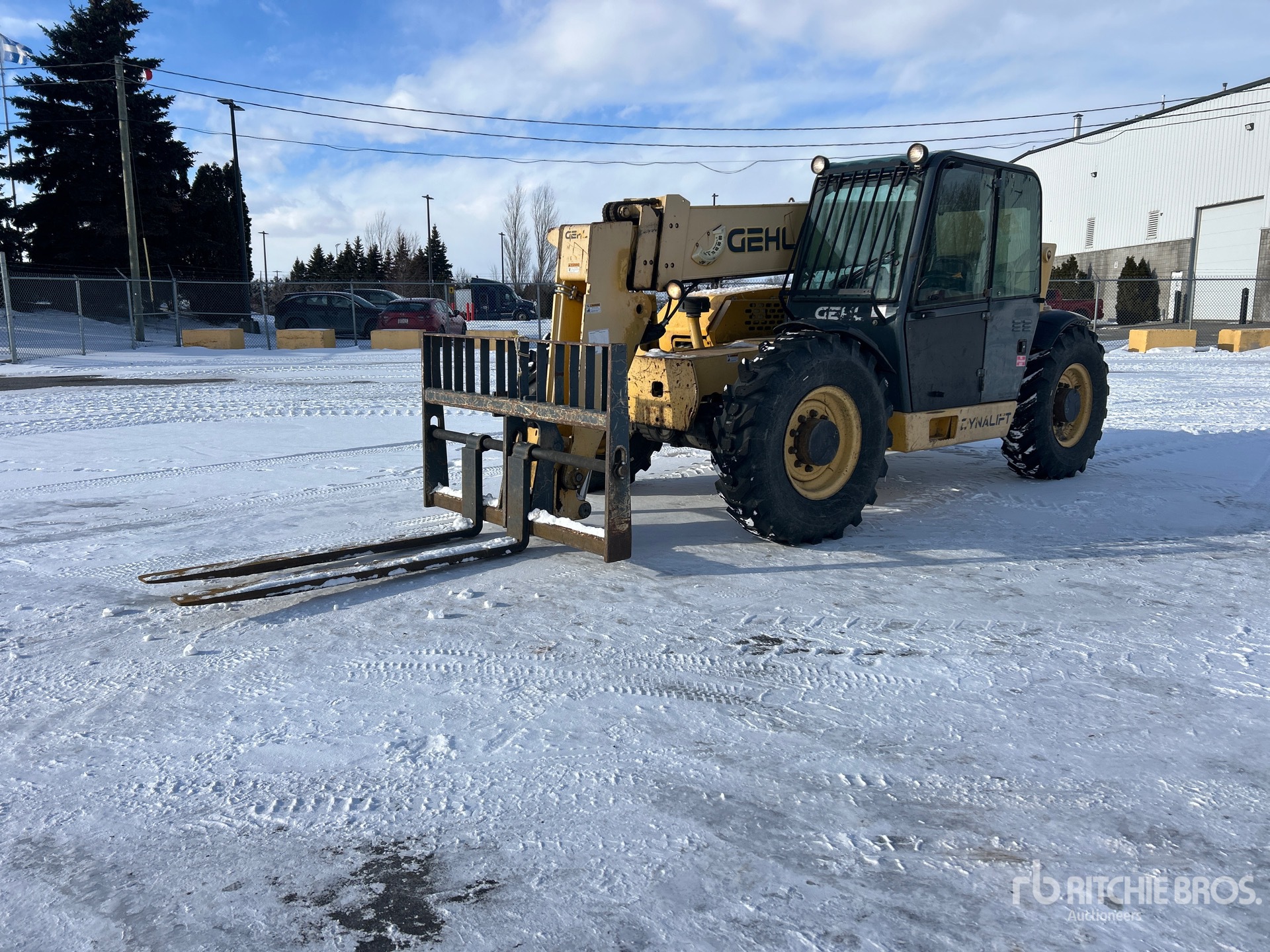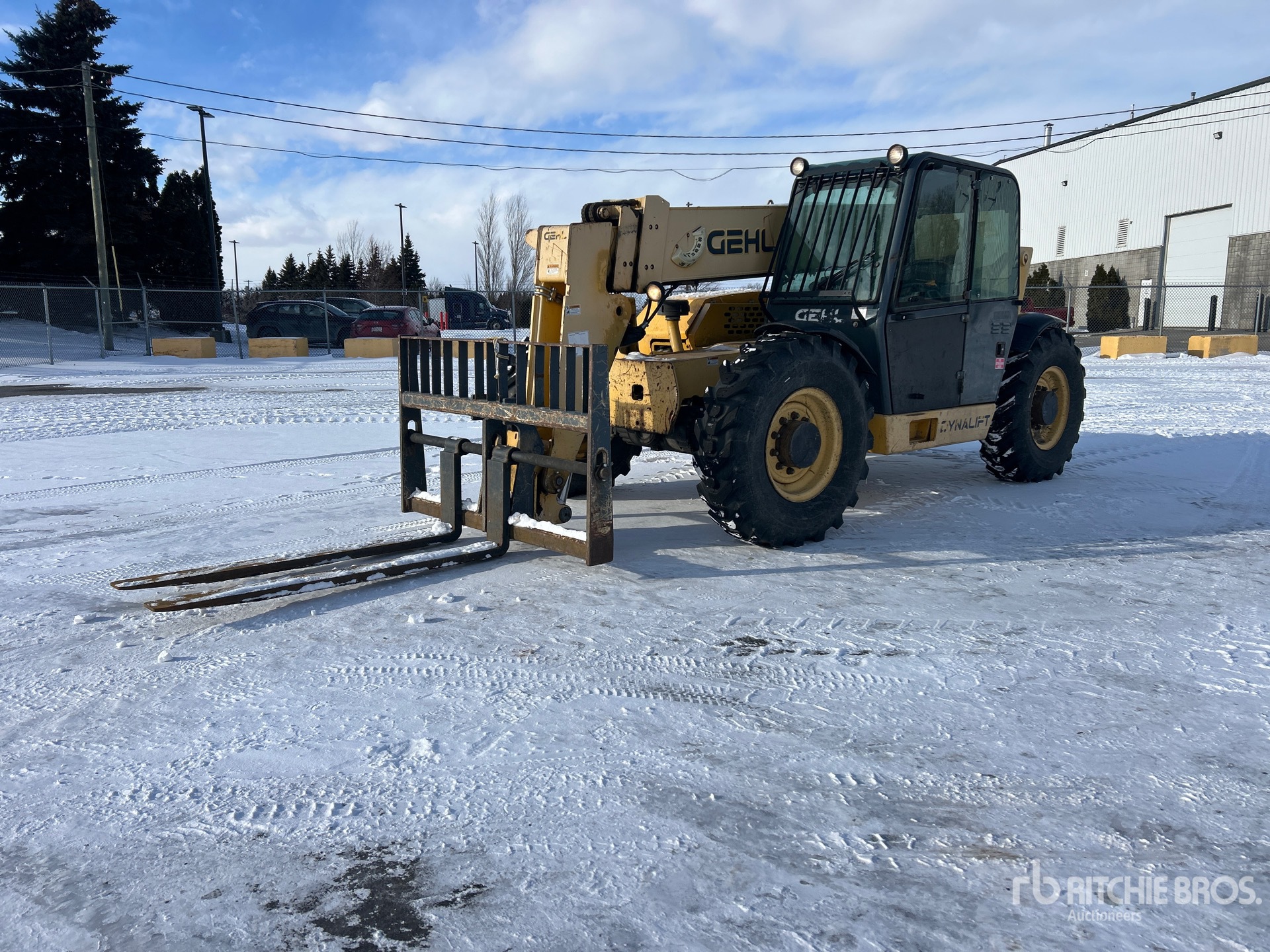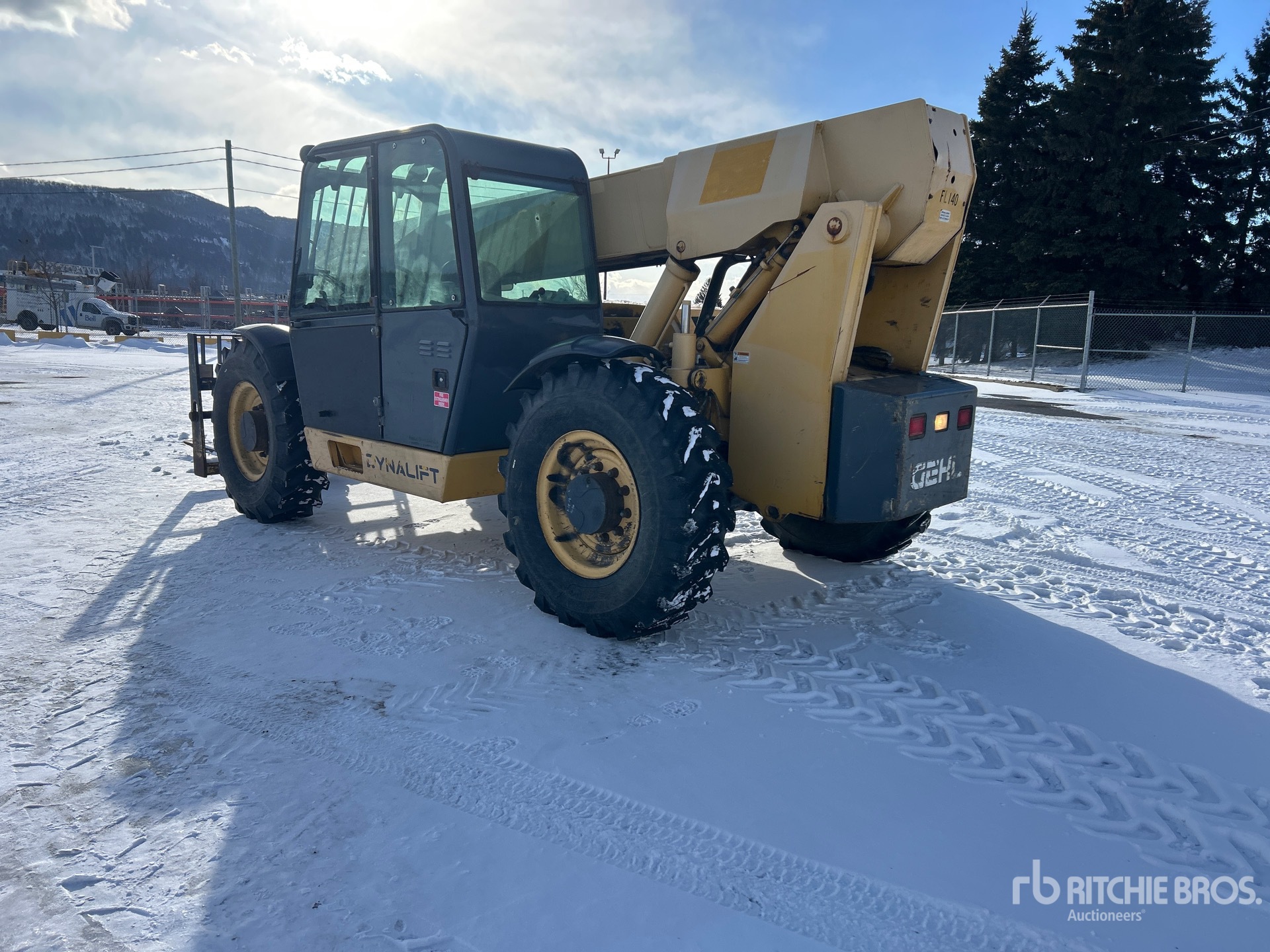 Enclosed Cab, 40 ft Max Lift Height, 12000 lb Max Lift Capacity, 72 in Forks, Tilt Carriage, Hydraulic Coupler, 14.00-24 Tires