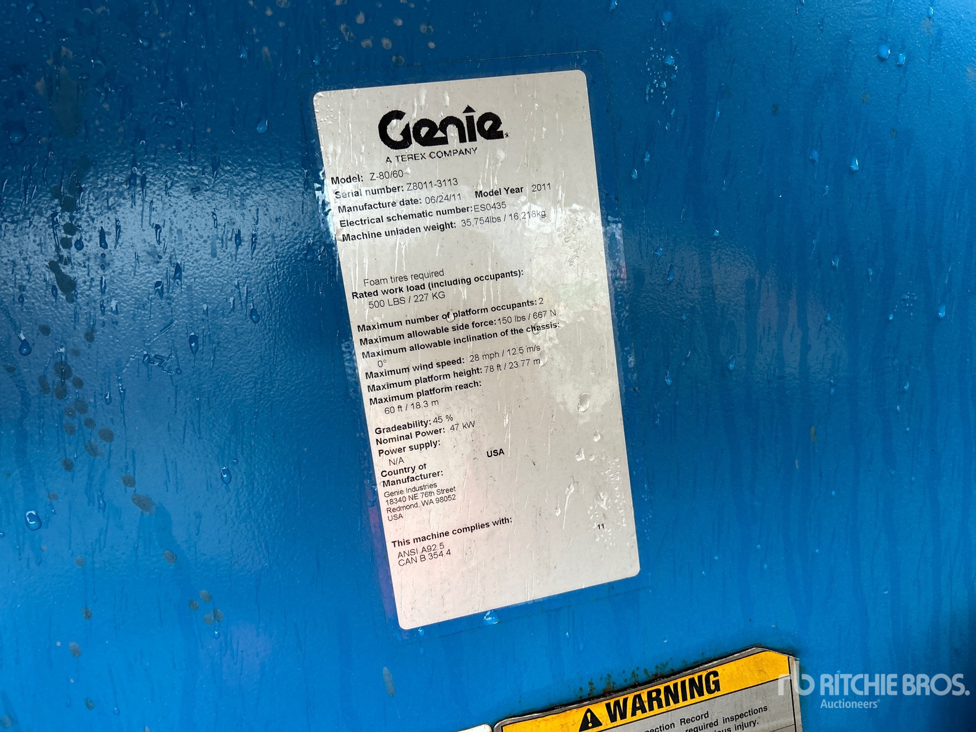 The detailed equipment information is limited in scope, and Ritchie Bros. Auctioneers has not inspected any aspects or components of the equipment other than those expressly set forth herein. Unless expressly stated, we make no representations or warranties, express or implied, concerning the equipment or its components, including without limitation any representations or warranties concerning functionality, conformity or compliance with any safety standard or requirement of any applicable authority or regulatory body, fitness for any particular purpose, or merchantability. You are strongly advised to perform your own detailed inspection of the equipment prior to bidding.