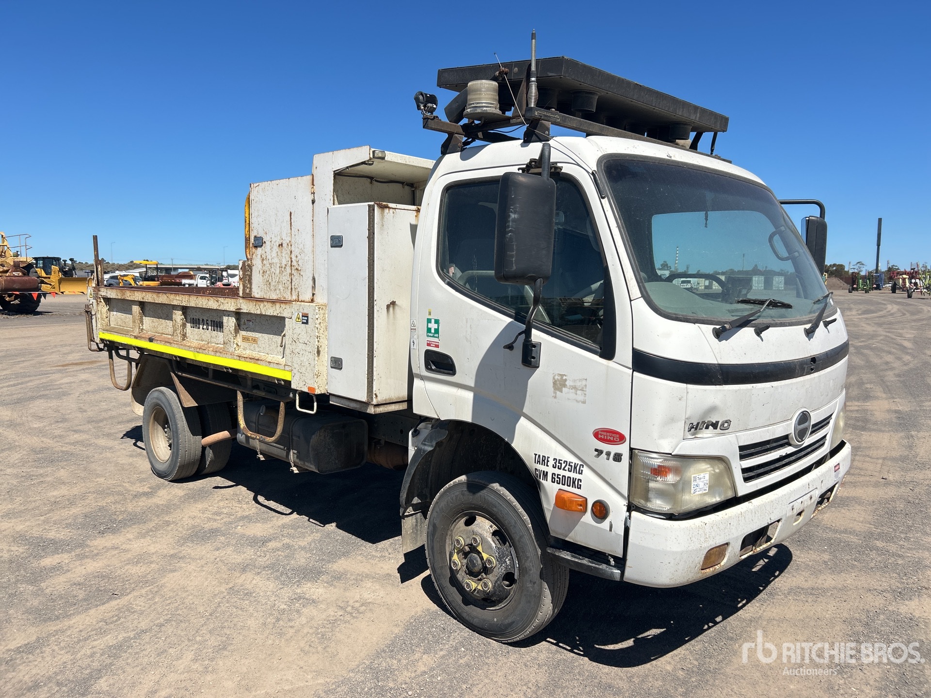 N04C 4 Cylinder Diesel 150 hp Engine, Exhaust Brake, 6-Speed Manual Transmission, 215/85R16, Spring Suspension, 3400 mm Wheelbase, PTO, Hydraulic System, 2700 mm Long x 400 mm High Steel Body, 2-Way Tailgate, 50 mm Ball Hitch, GVM 6.5 t