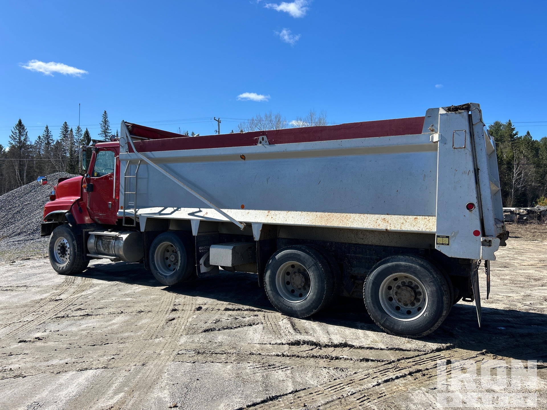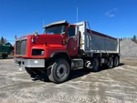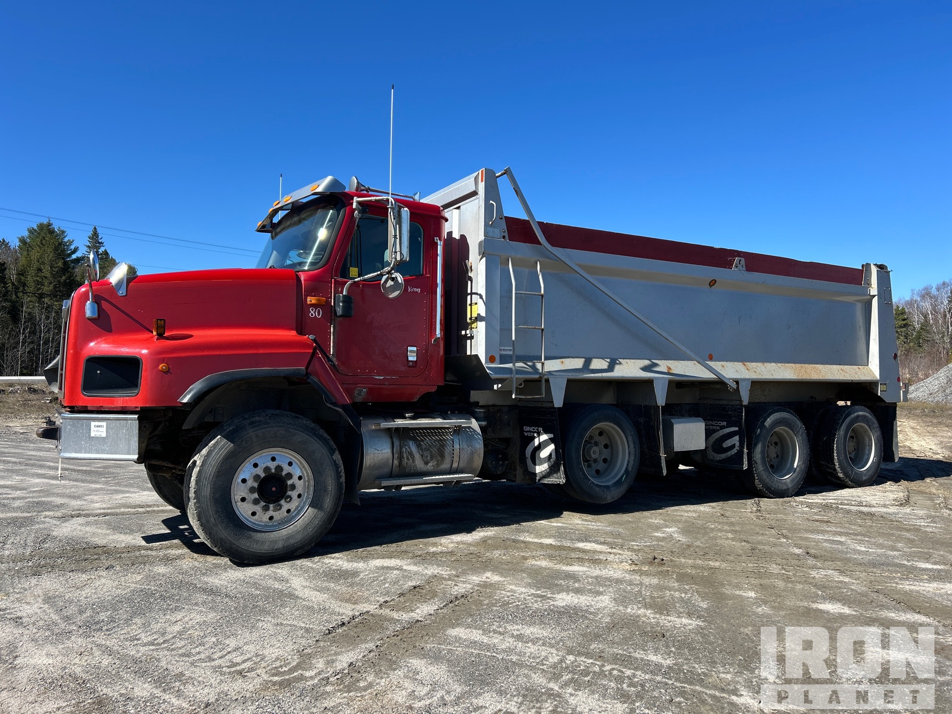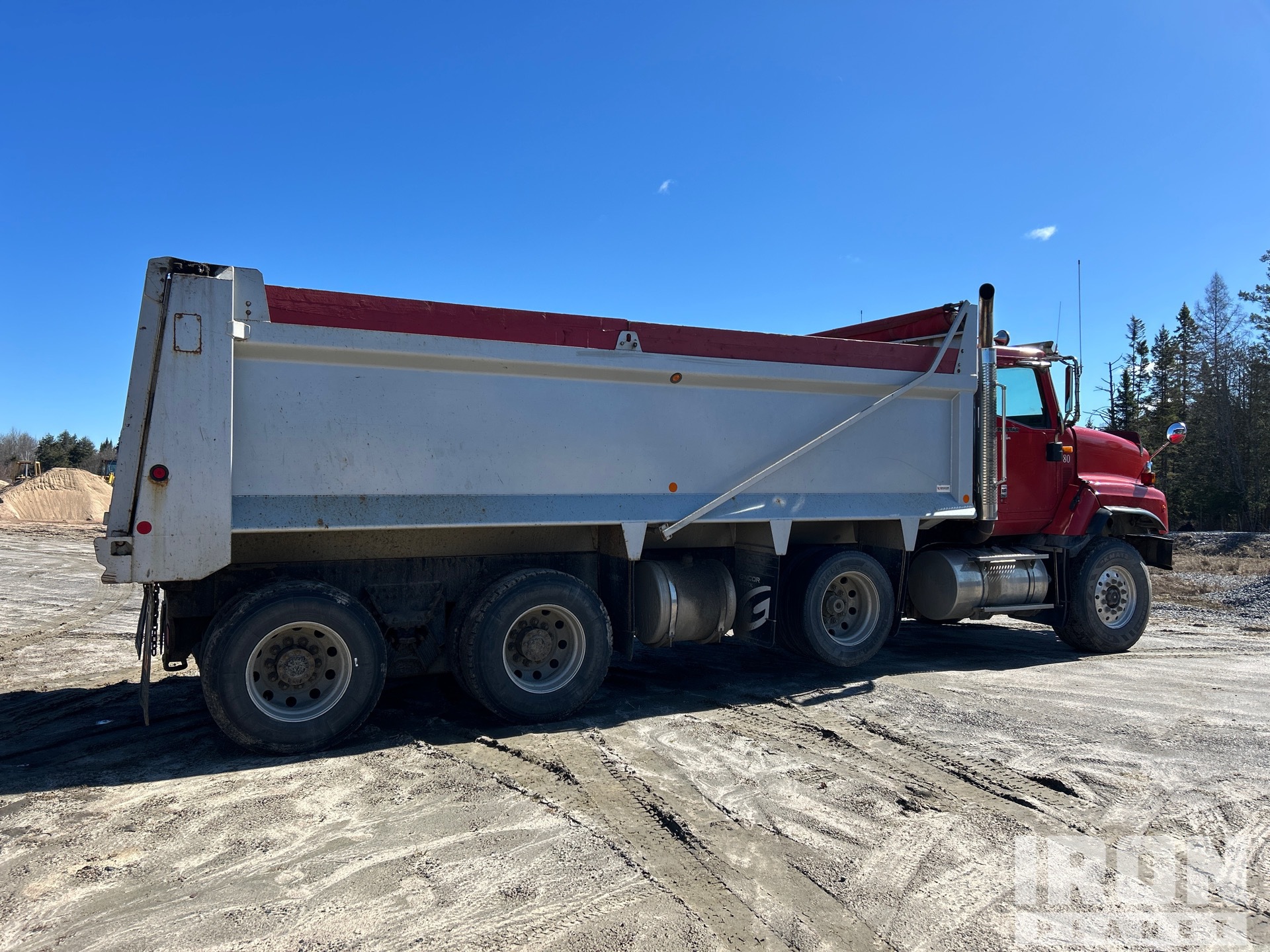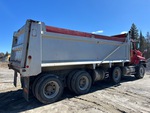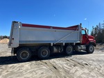 Cummins ISX 6 Cylinder 15 L 435 hp Engine, 2009 US EPA Label, 27357 Engine hrs, Engine Brake, Eaton Fuller 18-Speed Manual Transmission, 20000 lb Front Axle, 46000 lb Rears, 66000 lb GVWR, Air Ride Cab, Aluminum Wheels, 425/65R22.5 Front Tires, 11R22.5 Rear Tires, Dual Steering Boxes, Double Frame, Rubber over Walking Beam Suspension, 254 in Wheelbase, PTO, Wet Kit, 21 ft Long x 4 ft High Steel Body, Air Powered Roll Tarp
